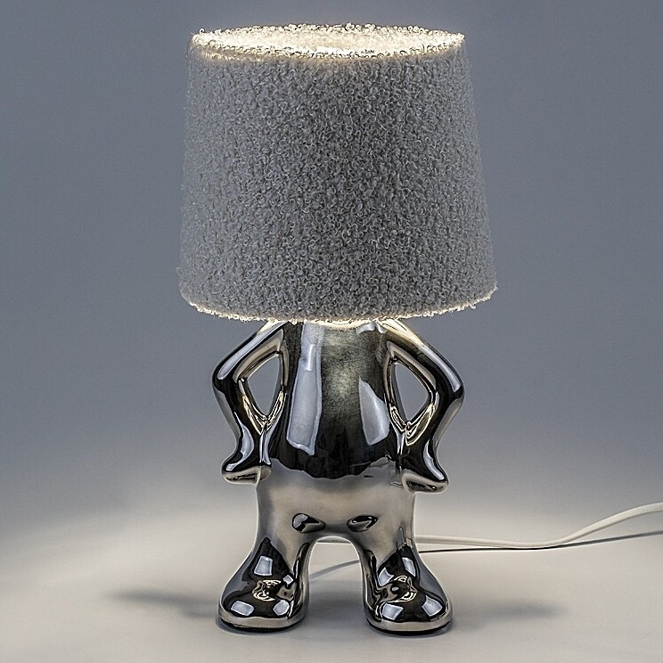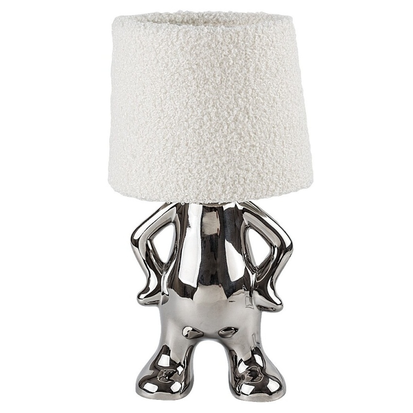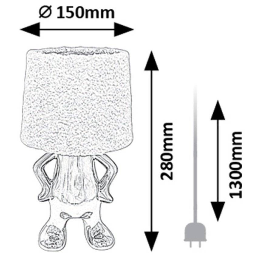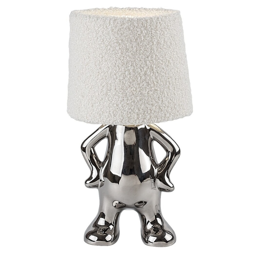Designová stolní lampa Rabalux Smurfy zaujme svým originálním a hravým vzhledem, který vnese do interiéru dávku radosti i elegance. Keramické tělo ve tvaru šmouly s lesklou chromovou povrchovou úpravou doplňuje krémové textilní stínítko, které působí jemně a útulně. Tato stylová lampa se skvěle hodí do obývacího pokoje nebo ložnice, kde poslouží jako dekorativní i funkční doplněk. Svítidlo je vybaveno kabelovým spínačem pro snadné ovládání a je určeno pro jednu žárovku s paticí E14 a maximálním příkonem 40 W. Dodává se bez světelného zdroje.
