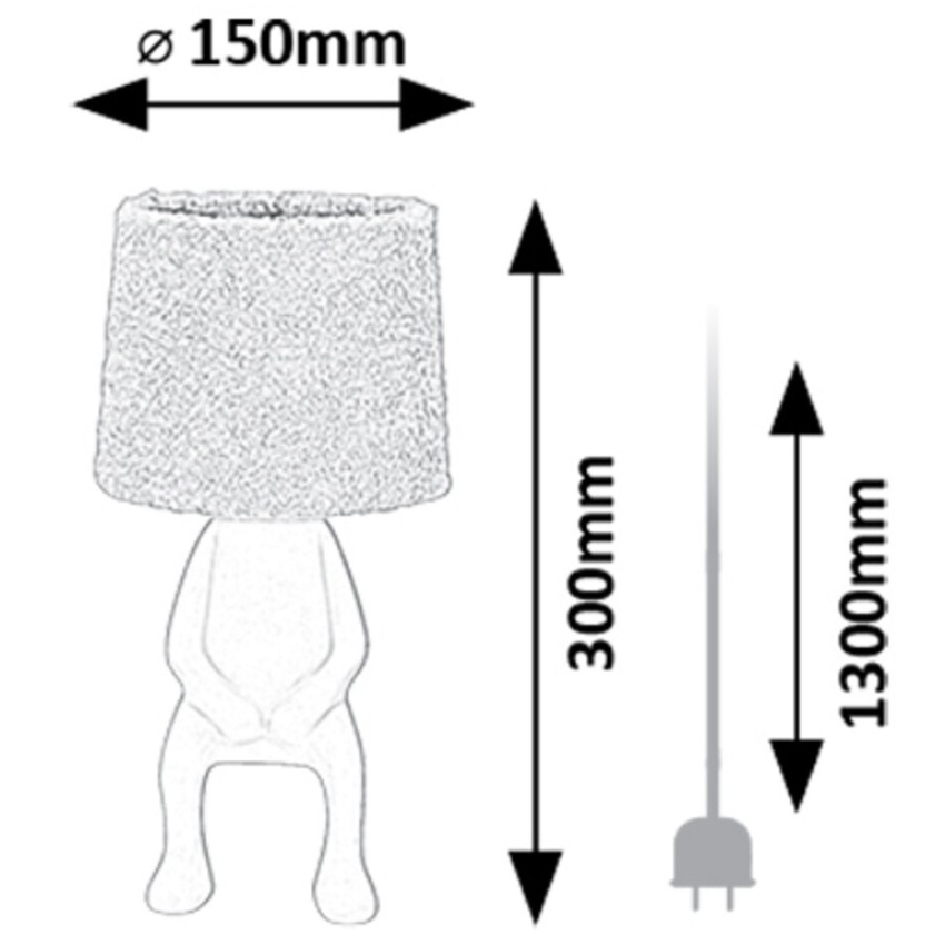 Stolní lampa Rabalux Smurfy v krémovém provedení je originálním a hravým doplňkem, který vnese do interiéru jedinečný charakter. Tělo lampy je tvarováno jako malý panáček z keramiky, jenž místo hlavy nese nadýchané textilní stínítko. Díky svému designu může lampa sedět na okraji stolu, poličky nebo komody, čímž zaujme na první pohled. Svítidlo v jednotném krémovém odstínu vytváří příjemnou atmosféru a je ideální do obývacího pokoje či ložnice. Lampa je vybavena kabelovým spínačem a je určena pro jednu žárovku s paticí E14 a maximálním příkonem 40 W. Dodává se bez světelného zdroje.