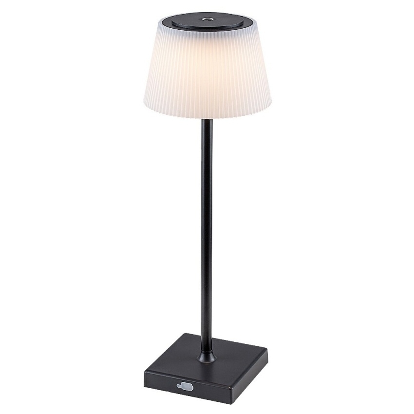 Moderní stolní LED lampa Rabalux Taena 76010 představuje elegantní a praktické osvětlení s pokročilými funkcemi. Je vyrobena z kovu v černé barvě a doplněna bílým plastovým stínítkem ve tvaru rozšiřující se sukně. Vestavěný LED zdroj o výkonu 4 W nabízí světelný tok 200 lm (330 lm bez stínítka) a životnost až 25 000 hodin. Pomocí dotykového spínače lze nejen stmívat jas, ale i plynule měnit barevnou teplotu od teplé po neutrální bílou (3000–5000 K). Lampa je vybavena vestavěnou baterií s kapacitou 1800 mAh, kterou lze nabíjet přes USB kabel. Krytí IP44 zaručuje odolnost vůči stříkající vodě, takže ji lze bezpečně používat i v prostorách s vyšší vlhkostí, například v ložnici nebo pracovně.