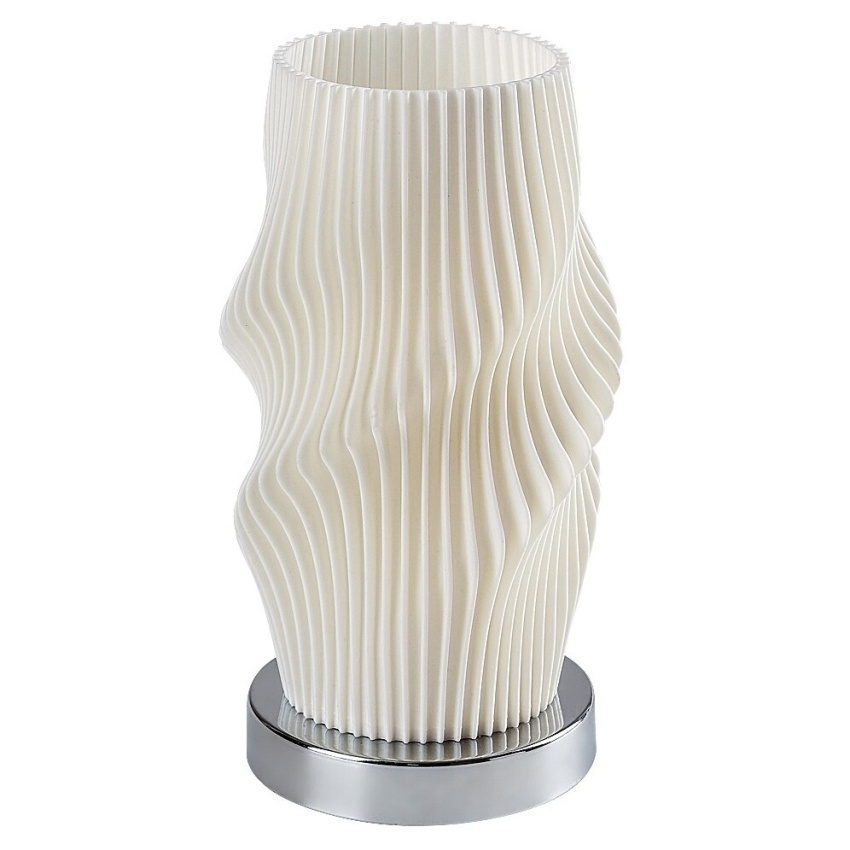 Stolní lampa Rabalux Tiana 74189 v moderním stylu představuje elegantní doplněk pro obývací pokoj, ložnici či pracovnu. Kovové tělo v chromovém provedení doplňuje bílé plastové stínidlo, které vytváří jemné rozptýlené světlo. Zvlněný povrch dodává lampě organický vzhled a působí lehce a moderně. Lampa stojí na stabilní kulaté základně a ovládá se pomocí kabelového vypínače. Je určena pro jednu žárovku s paticí E14 a maximálním příkonem 25 W. Díky svým kompaktním rozměrům je vhodná i na menší noční nebo pracovní stolky. Dodává se bez světelného zdroje.