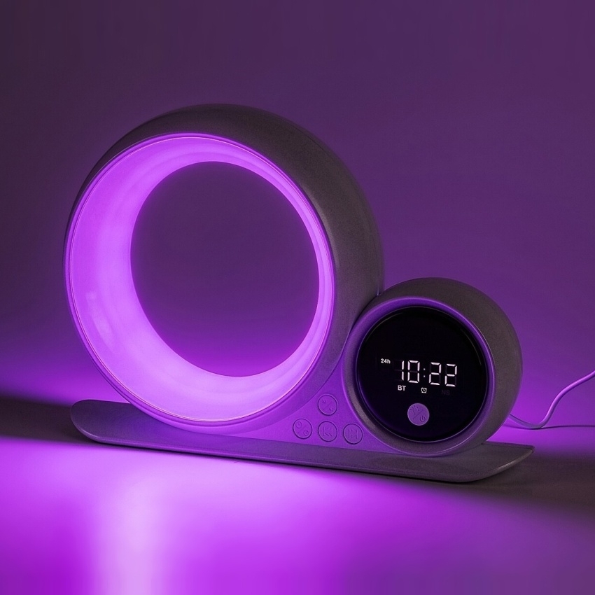 Rabalux Wakeway 76109 je moderní multifunkční stolní LED lampa s RGB osvětlením, integrovaným reproduktorem a displejem pro zobrazení času – ideální doplněk do moderní domácnosti.
