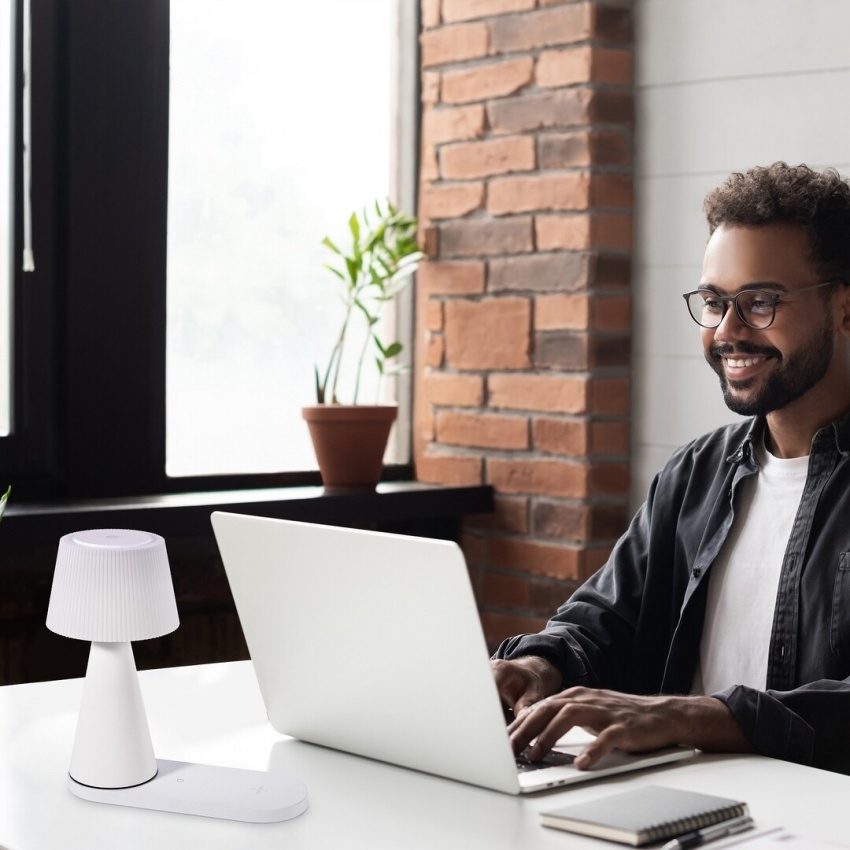 Stolní LED lampa Rabalux Zavier 74214 v bílé barvě kombinuje moderní design s praktickými funkcemi. Je vyrobena z odolného plastu a díky svému čistému vzhledu se skvěle hodí do obývacího pokoje, ložnice či dětského pokoje. Pomocí dotykového spínače lze plynule měnit jas i teplotu světla – k dispozici jsou tři úrovně (3000 K, 4000 K a 5000 K), takže si snadno přizpůsobíte osvětlení aktuální potřebě. Lampa je vybavena vestavěnou baterií s kapacitou 3600 mAh, která se plně nabije za 5 hodin a poskytuje až 6 hodin provozu. Součástí je také funkce bezdrátového nabíjení, která umožňuje nabíjet kompatibilní telefony podle standardu QI. Díky integrované LED technologii nabízí svítidlo úsporný provoz a dlouhou životnost.