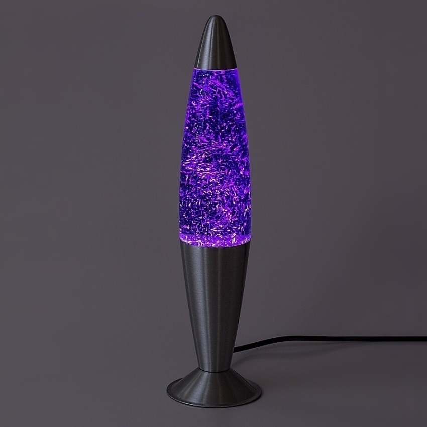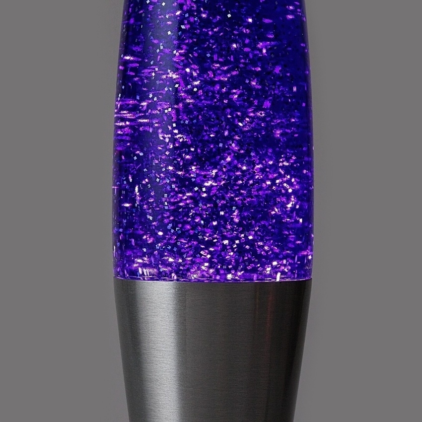 Rabalux Glitter 2 76115 je elegantní dekorativní lávová stolní lampa se stříbrnou kovovou základnou a průhledným skleněným stínítkem, která svým fialovým osvětlením a třpytivým efektem oživí každý interiér.