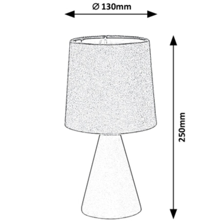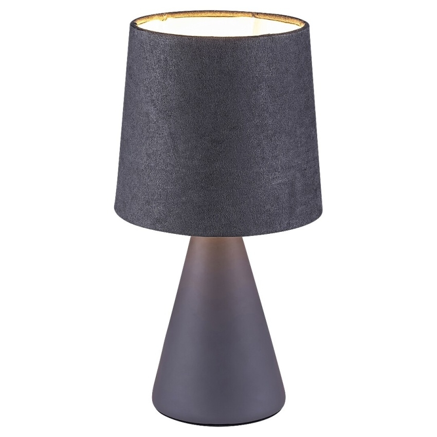 Stolní lampa Rabalux Nalani 2695 v moderním šedém provedení je elegantním a decentním doplňkem ložnice či obývacího pokoje. Kombinuje keramické tělo se sametovým textilním stínítkem stejné barvy, které rozptyluje světlo do jemného, teplého tónu a vytváří příjemnou atmosféru. Díky kompaktním rozměrům se vejde i na menší noční stolek nebo polici. Svítidlo je určeno pro jednu žárovku s paticí E14 a maximálním výkonem 40 W. Ovládá se pomocí kabelového spínače v černé barvě a dodává se bez světelného zdroje.