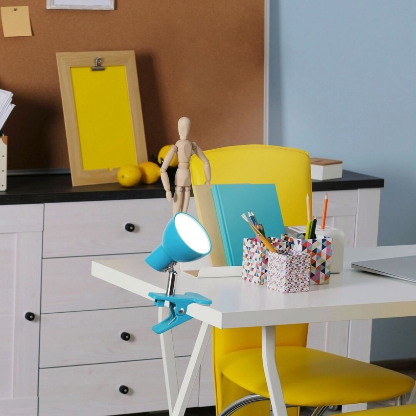 Kompaktní LED svítidlo Rabalux Noah 1479 je praktickým a stylovým doplňkem pro domácí i pracovní prostředí. Díky klipu jej lze snadno připevnit na stůl, polici nebo rám postele, takže je ideální jako čtecí či doplňkové světlo. Modré kovové tělo doplňuje plastové stínítko ve stejné barvě, které vyzařuje měkké, teplé bílé světlo s teplotou 3000 K. Vestavěný LED zdroj s výkonem 5 W poskytuje světelný tok 360 lm a nabízí životnost až 20 000 hodin. Svítidlo se ovládá pohodlně pomocí spínače umístěného na kabelu a díky svým rozměrům je snadno přenosné a univerzálně použitelné.