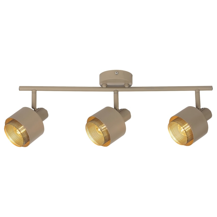 Trojité bodové svítidlo Rabalux Fedora 3549 zaujme elegantní kombinací světle hnědé a zlaté barvy, která interiéru dodá hřejivý a sofistikovaný nádech. Kovová konstrukce se třemi perforovanými vnitřními stínidly ve zlatém tónu vytváří jedinečný světelný efekt a příjemnou atmosféru. Díky třem samostatným bodům osvětlení je svítidlo vhodné do obývacího pokoje, ložnice či pracovny. Určeno pro žárovky s paticí E14 (max. 40 W). Dodává se bez světelných zdrojů.