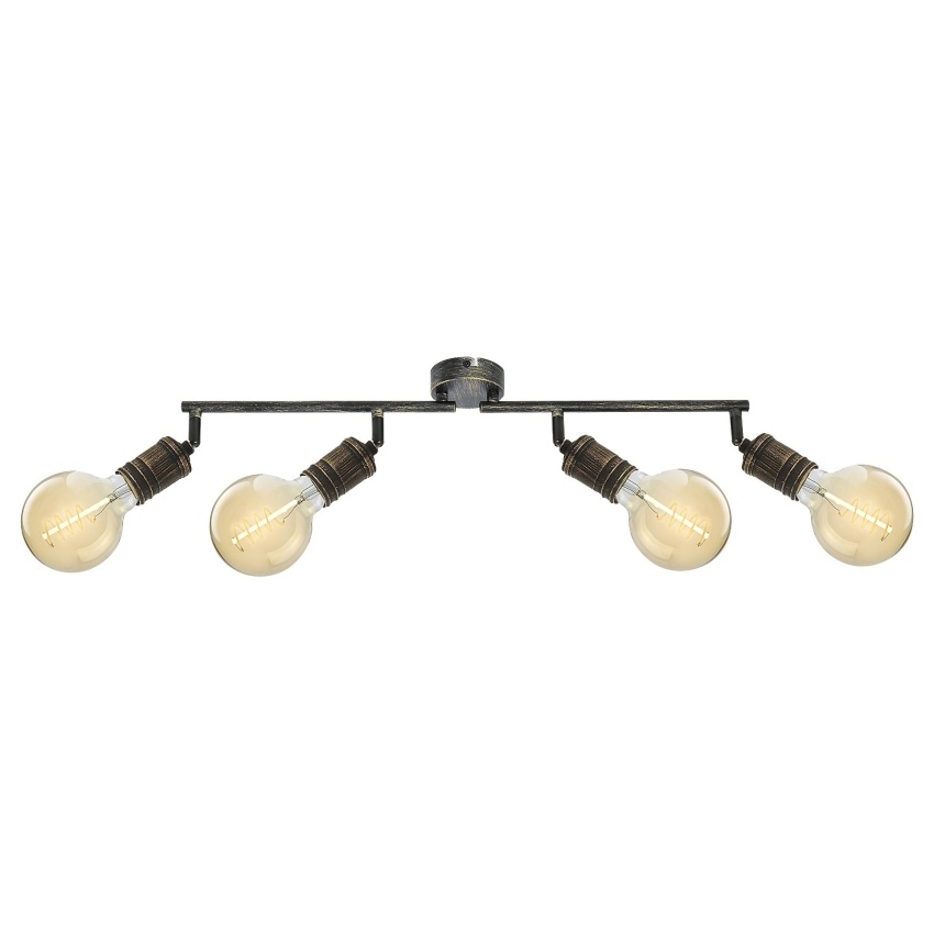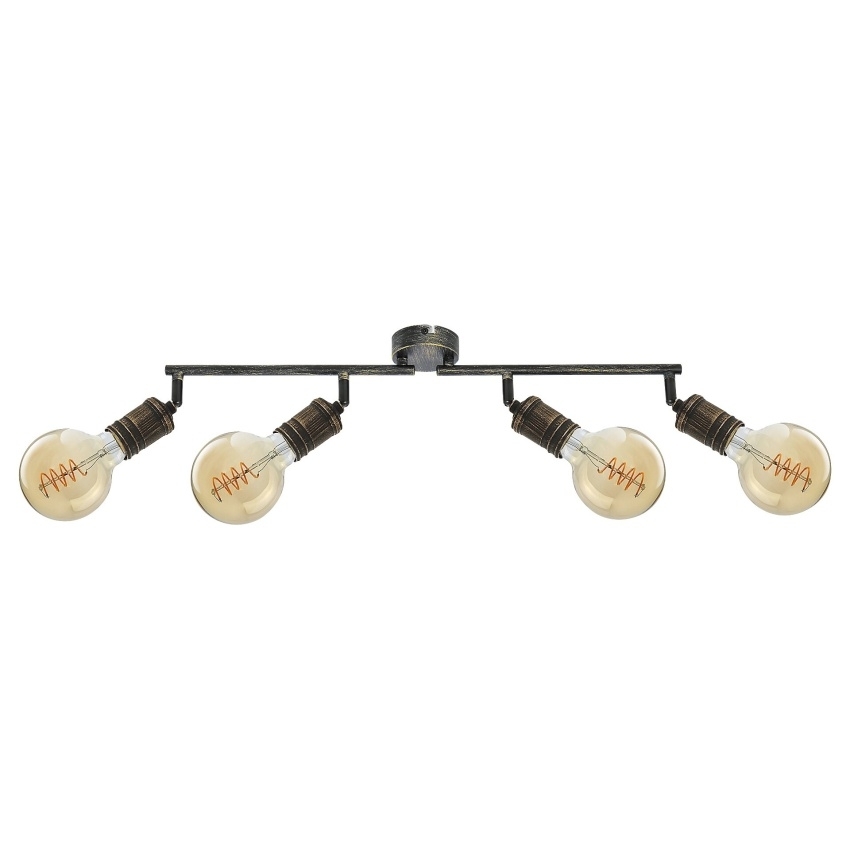 Stropní bodové svítidlo Rabalux Fidel 3217 v antickém zlatém provedení je elegantním doplňkem s industriálním nádechem, který vynikne v každém moderním interiéru. Kovová konstrukce s patinovaným povrchem působí stylově a odolně, zatímco čtyři nastavitelné hlavy umožňují nasměrování světla přesně tam, kde je potřeba. Svítidlo se hodí do obývacího pokoje, jídelny, kuchyně nebo ložnice a díky svému designu dodá místnosti útulnou atmosféru. Určeno pro čtyři žárovky s paticí E27 a maximálním výkonem 25 W. Dodává se bez světelných zdrojů.