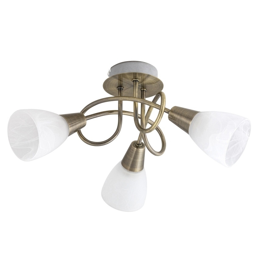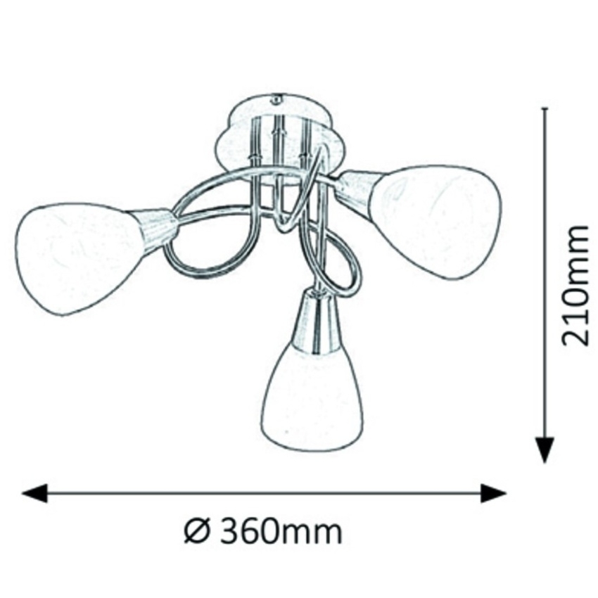 Stropní svítidlo Rabalux Jenna 5533 v elegantním provedení antické bronzi přináší do interiéru klasický styl s decentním nádechem luxusu. Kovová konstrukce je doplněna třemi bílými skleněnými stínítky, která rovnoměrně rozptylují světlo a zajišťují příjemné osvětlení místnosti. Díky svému univerzálnímu designu se svítidlo hodí do obývacího pokoje, ložnice i pracovny. Určeno pro tři žárovky s paticí E14 (max. 40 W), dodává se bez světelných zdrojů.