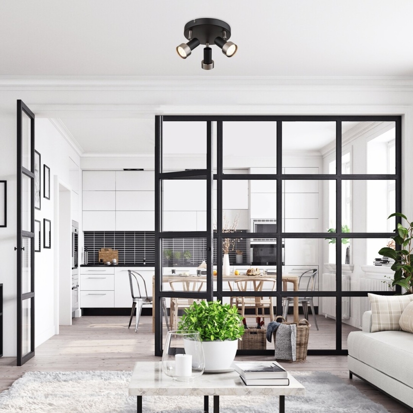 Trojbodové stropní svítidlo Rabalux Konrad 73013 v industriálním stylu je ideální volbou pro moderní interiéry, kde vynikne svým minimalistickým kovovým designem. Matně černé tělo svítidla doplňují tři stříbrná válcovitá stínidla, která působí elegantně a současně decentně. Díky pohyblivým hlavám lze směr světla snadno přizpůsobit podle potřeby. Svítidlo je vhodné pro obývací pokoj, pracovnu nebo ložnici a je určeno pro tři žárovky s paticí GU10 o maximálním výkonu 50 W. Dodává se bez světelných zdrojů.