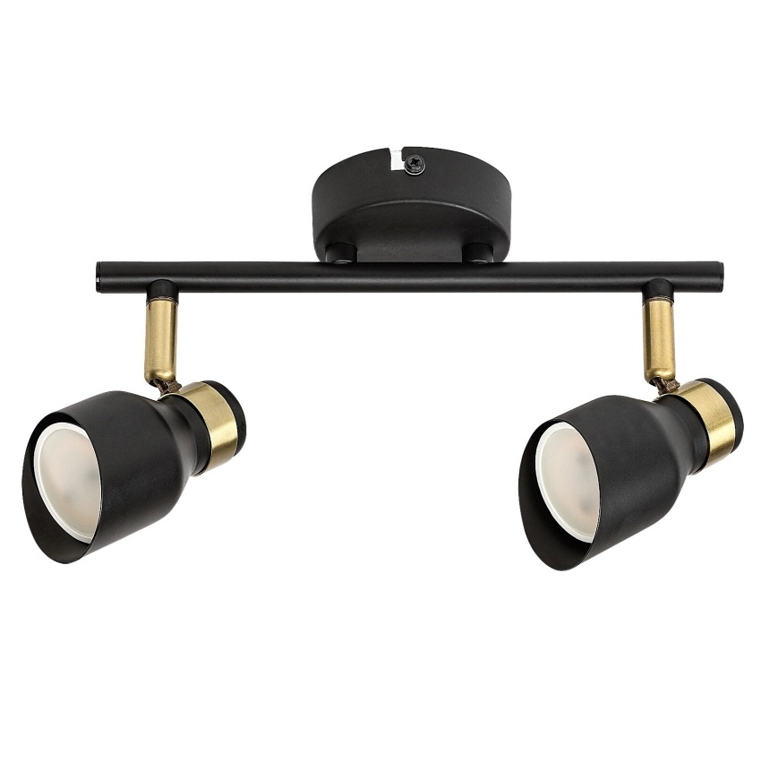 Dvojité stropní svítidlo Rabalux Lilou 73048 v moderním stylu zaujme elegantní kombinací matné černé a zlaté barvy. Kovové tělo se dvěma válcovými stínidly seříznutými pod úhlem dodává interiéru sofistikovaný vzhled. Díky pohyblivým hlavicím lze světlo snadno nasměrovat podle potřeby, což z lampy činí praktické i stylové řešení pro obývací pokoj, ložnici nebo pracovnu. Svítidlo je určeno pro dvě žárovky s paticí GU10 a maximálním příkonem 25 W. Dodává se bez světelných zdrojů.