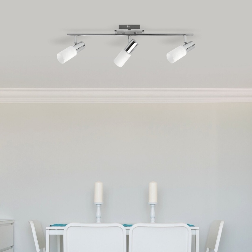 Stropní bodové svítidlo Rabalux Logan 6098 v elegantním chromovém provedení představuje moderní řešení osvětlení vhodné pro obývací pokoj, ložnici nebo pracovnu. Kovová konstrukce doplněná třemi bílými skleněnými stínítky působí nadčasově a v interiéru vytváří příjemné a rovnoměrné světlo. Díky otočným hlavám lze světlo směrovat podle potřeby. Svítidlo je určeno pro tři žárovky s paticí E14 (max. 40 W) a dodává se bez světelných zdrojů.