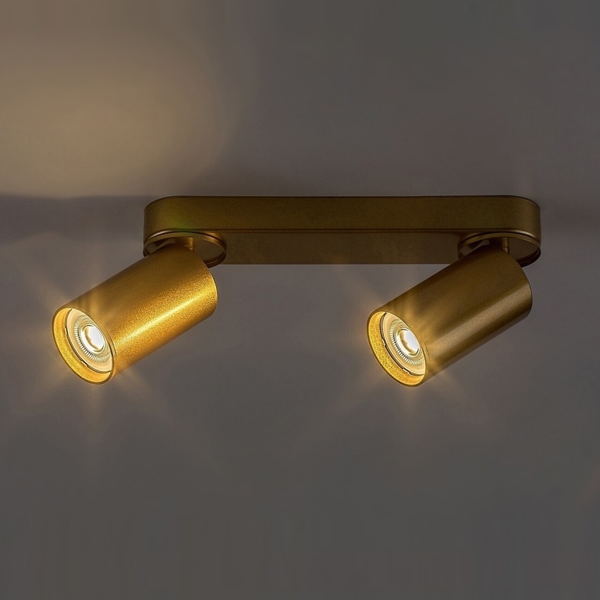 Stropní bodové svítidlo Rabalux Mirina 73076 s dvojicí světelných hlav kombinuje elegantní zlaté provedení s minimalistickým designem. Kovová konstrukce s hliníkovými válcovitými stínidly působí stylově a moderně, zatímco flexibilní hlavy umožňují přesné nasměrování světla podle potřeby. Svítidlo je upevněno na podlouhlé dekorativní základně se zaoblenými konci, což podtrhuje jeho jemný a harmonický vzhled. Ideální řešení pro osvětlení obývacího pokoje, ložnice nebo pracovny. Určeno pro dvě žárovky s paticí GU10 a maximálním příkonem 5 W. Dodává se bez světelných zdrojů.