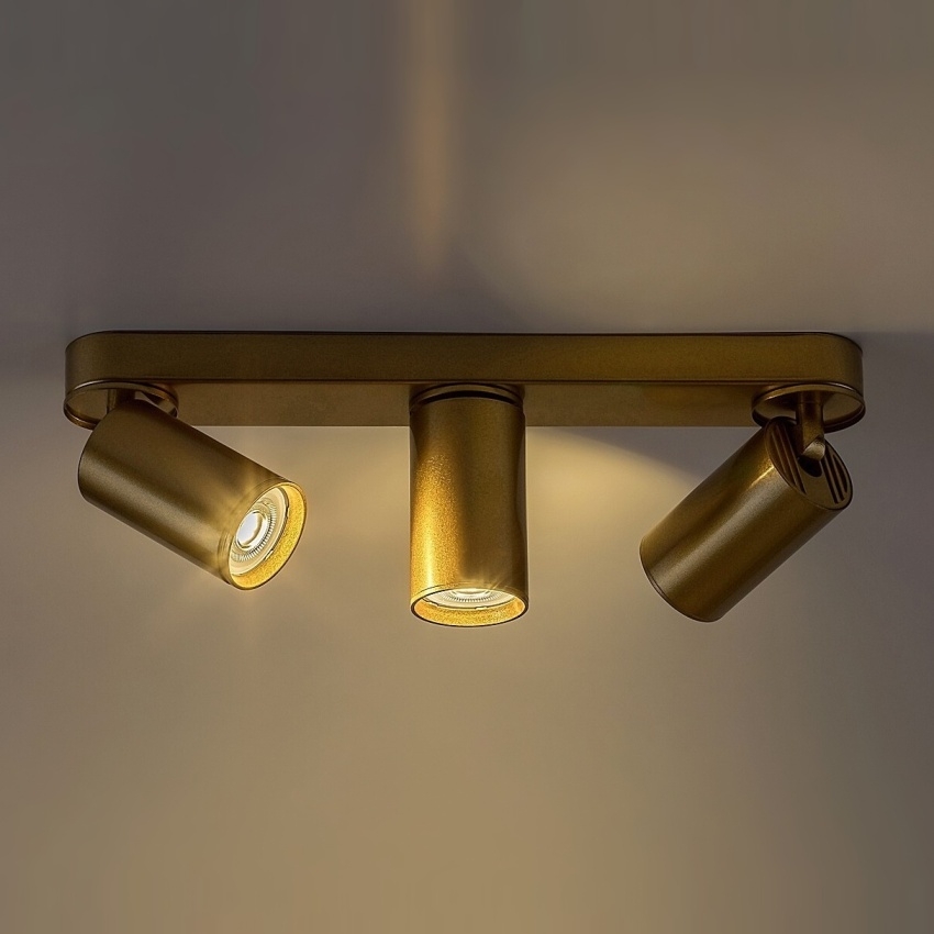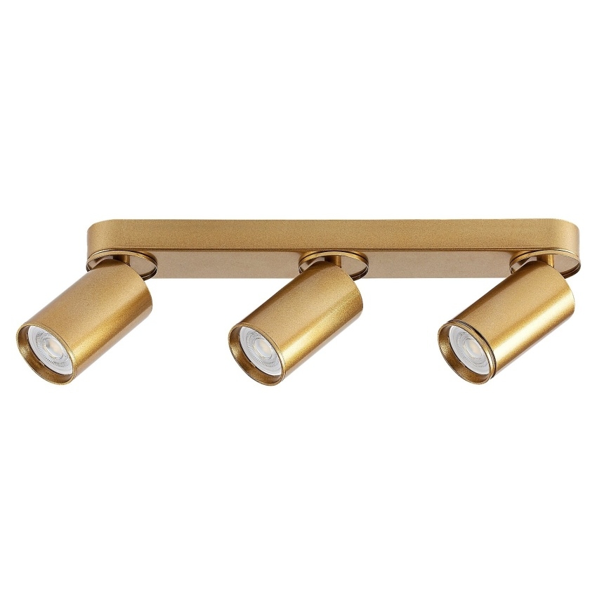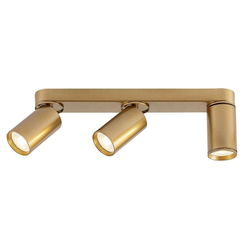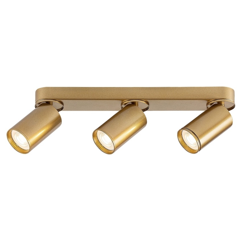 Stropní bodové svítidlo Rabalux Mirina 73077 v elegantním zlatém provedení zaujme minimalistickým vzhledem a kvalitním kovovým zpracováním. Tři válcovité světelné prvky s hliníkovými stínidly jsou uspořádány v jedné linii na podlouhlé základně se zaoblenými konci. Flexibilní hlavy umožňují snadné nastavení směru světla podle potřeby. Svítidlo je vhodné pro použití se třemi žárovkami s paticí GU10 a maximálním příkonem 5 W. Díky svému decentnímu, ale výraznému vzhledu je ideální do obývacího pokoje, ložnice nebo pracovny. Dodává se bez světelných zdrojů.