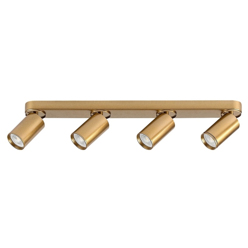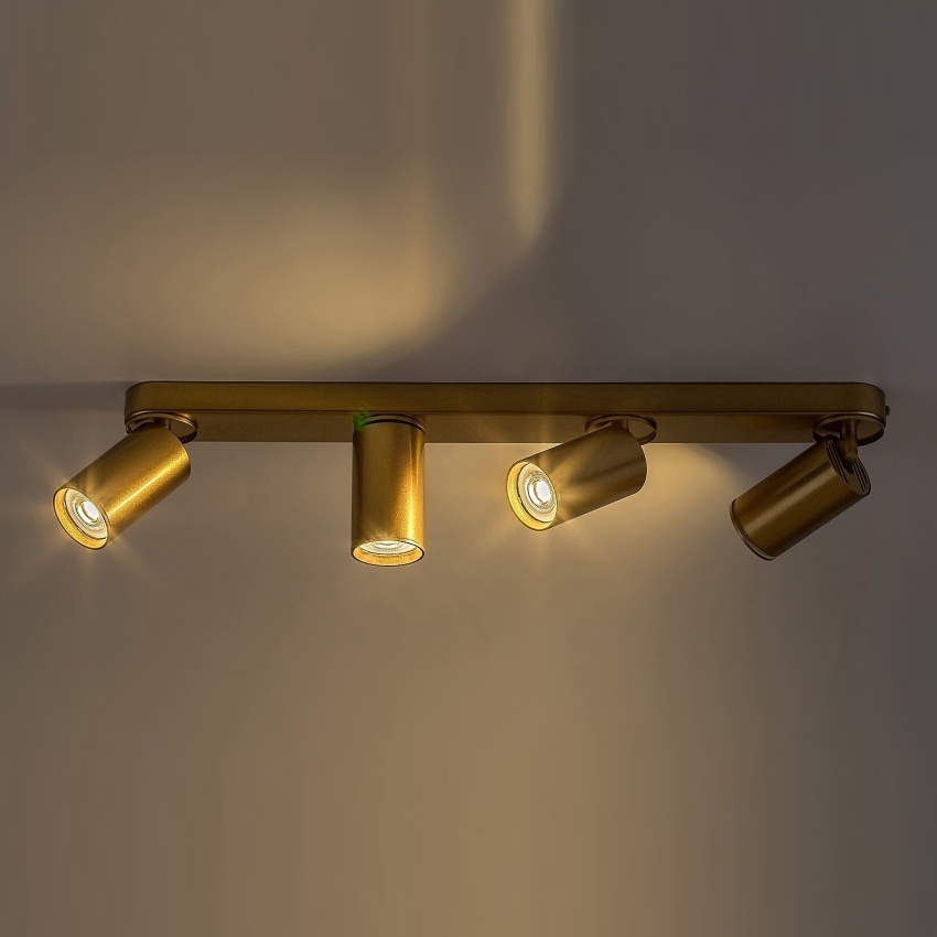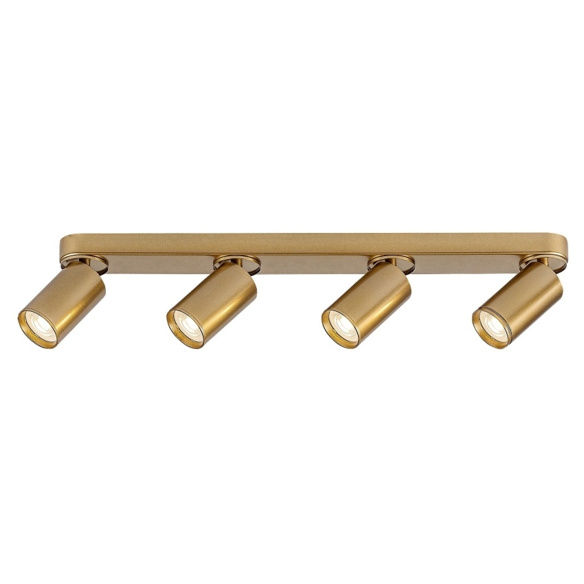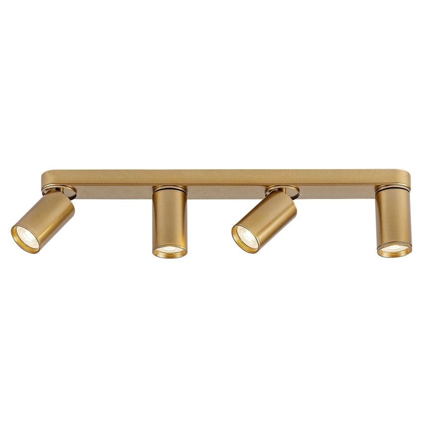 Stropní bodové svítidlo Rabalux Mirina 73078 zaujme svým minimalistickým designem a elegantním zlatým provedením. Kovová konstrukce s hliníkovými válcovitými stínidly působí moderně a luxusně zároveň. Čtyři flexibilní hlavy umožňují nasměrovat světlo přesně tam, kde je potřeba, a poskytují dostatečné osvětlení i ve větších místnostech. Svítidlo je upevněno na dlouhé dekorativní základně se zaoblenými konci, která podtrhuje jeho čistý a vyvážený vzhled. Ideální volba do obývacího pokoje, ložnice nebo pracovny. Určeno pro čtyři žárovky s paticí GU10 a maximálním příkonem 5 W. Dodává se bez světelných zdrojů.