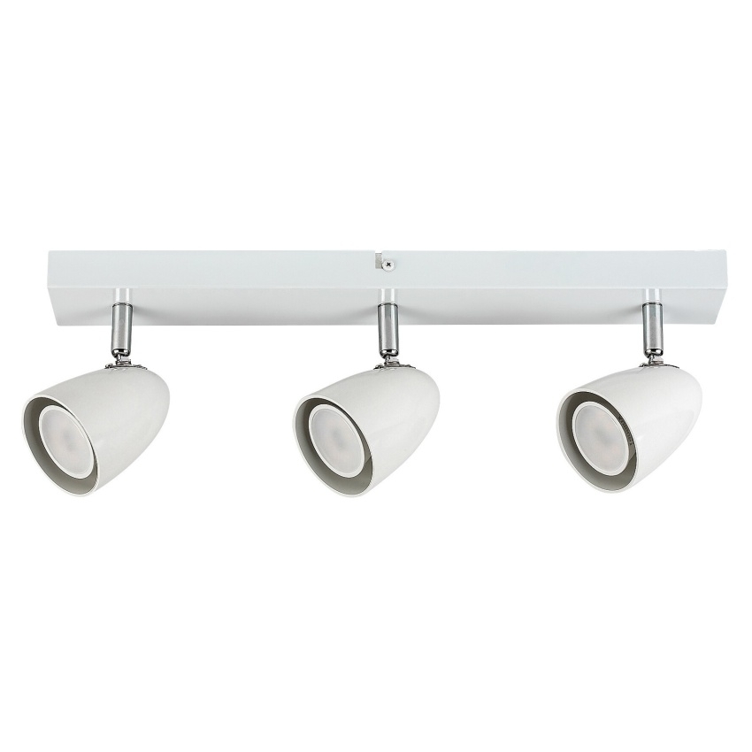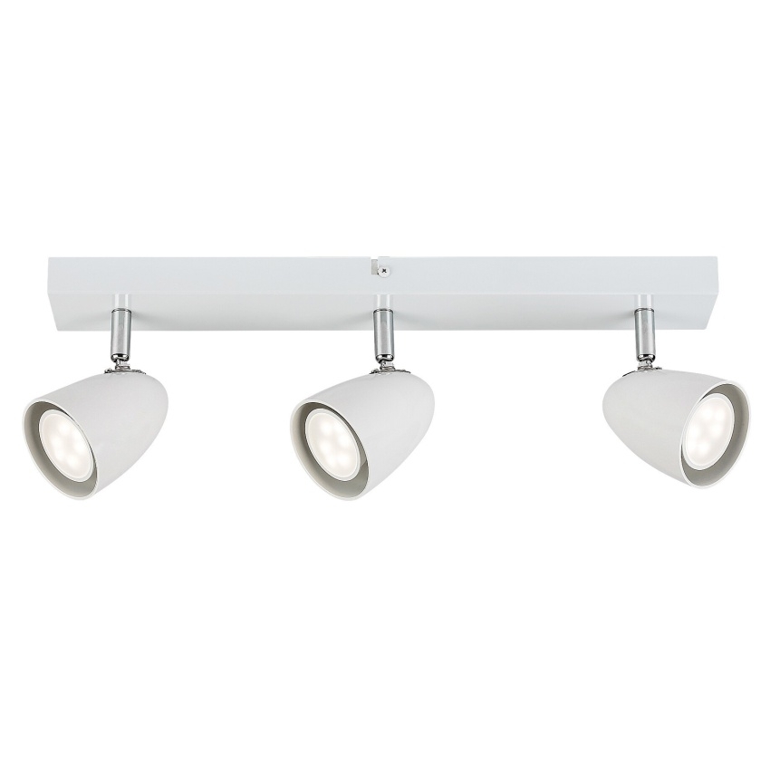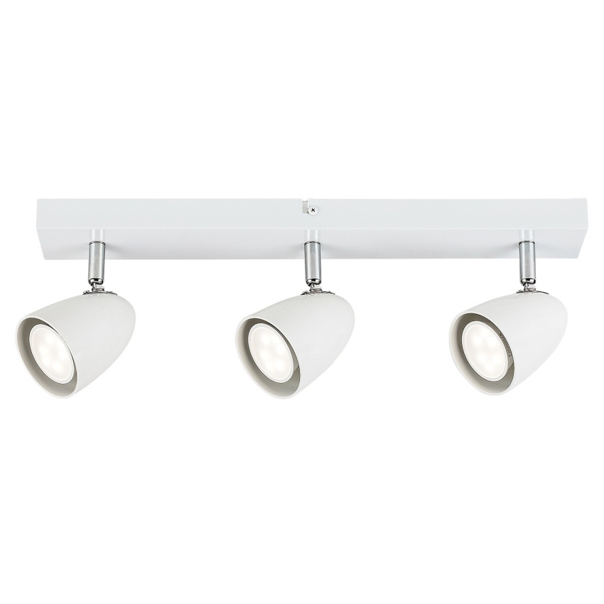 Moderní trojité stropní svítidlo Rabalux Perico 73020 je elegantním doplňkem pro moderní interiéry, jako jsou obývací pokoje, ložnice či pracovny. Bílé kovové tělo doplňují plastová stínidla ve stejném odstínu, která působí čistě a nadčasově. Tři pohyblivé světelné hlavy umožňují směrovat světlo podle potřeby a zajistit tak optimální osvětlení prostoru. Lampa je určena pro tři žárovky s paticí GU10 o maximálním výkonu 5 W. Dodává se bez světelných zdrojů.