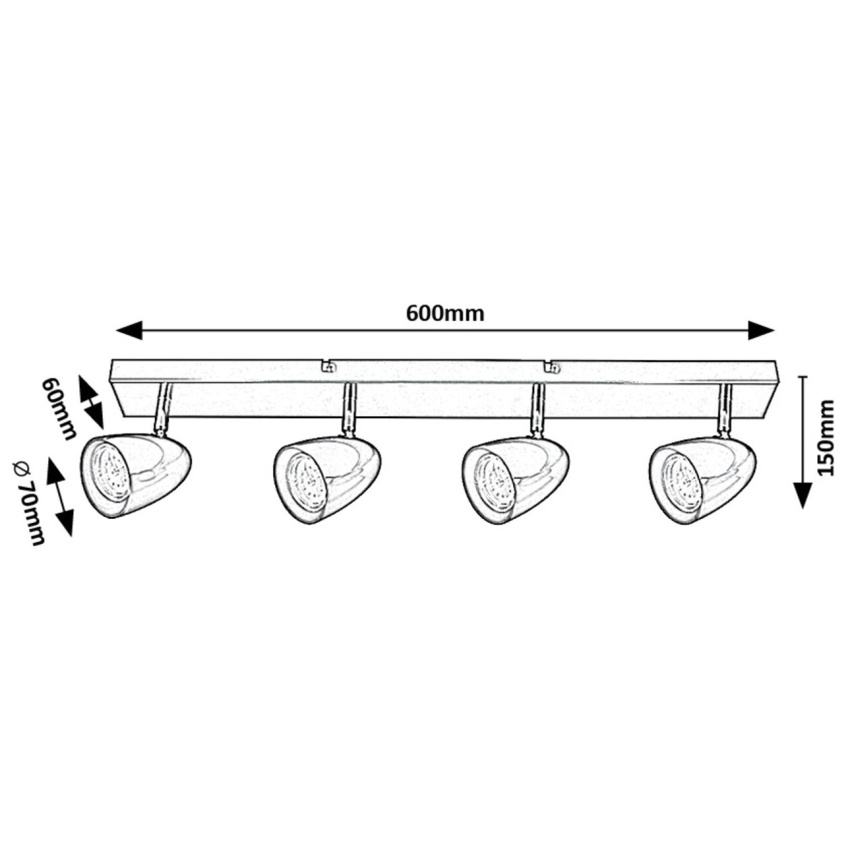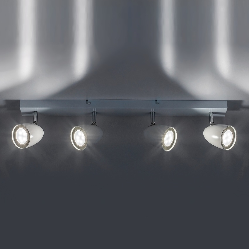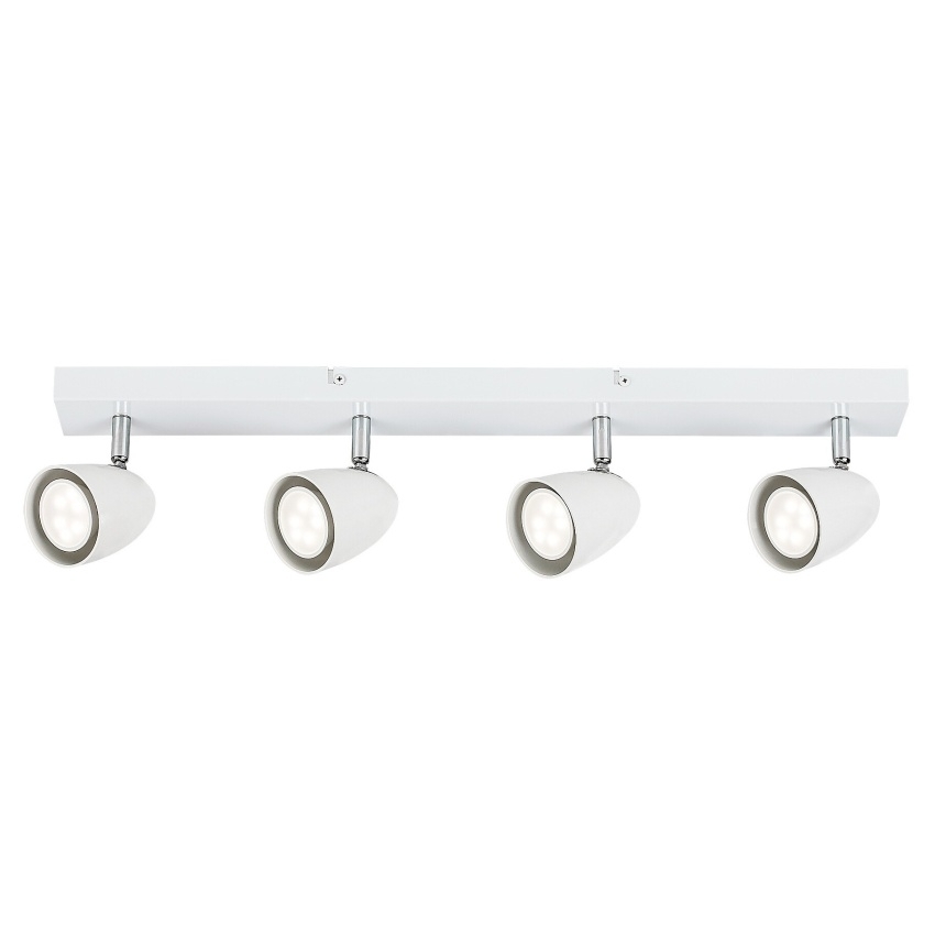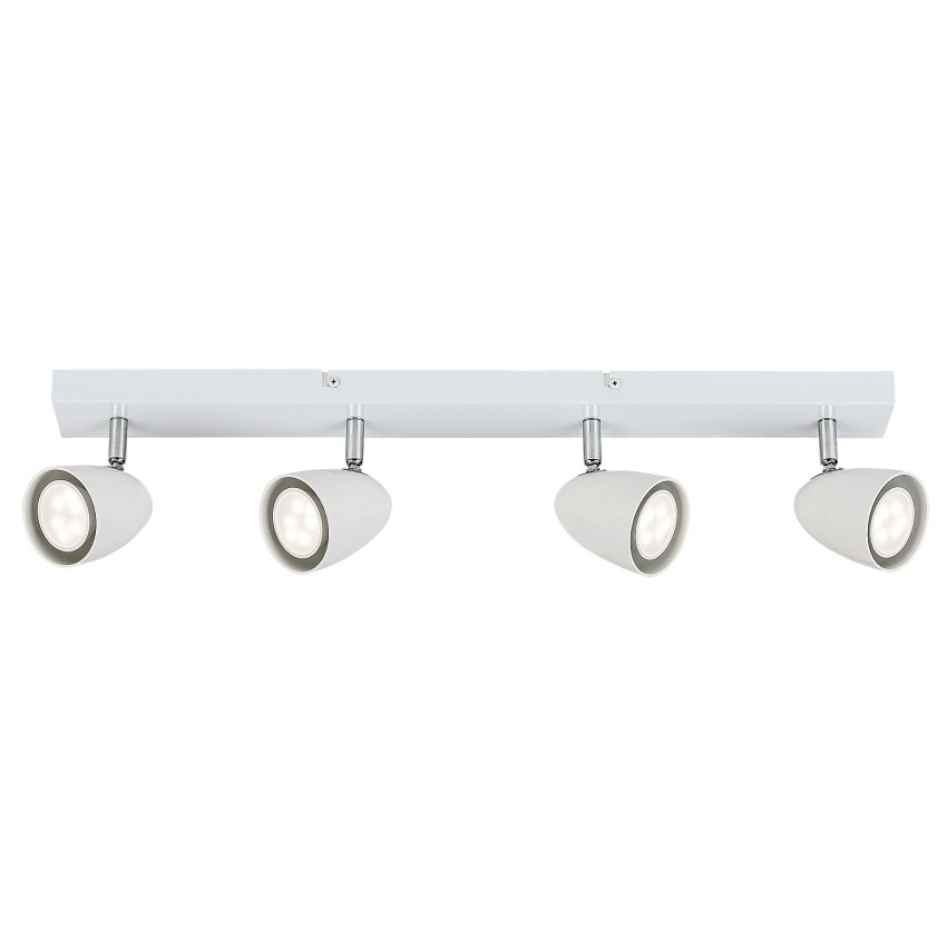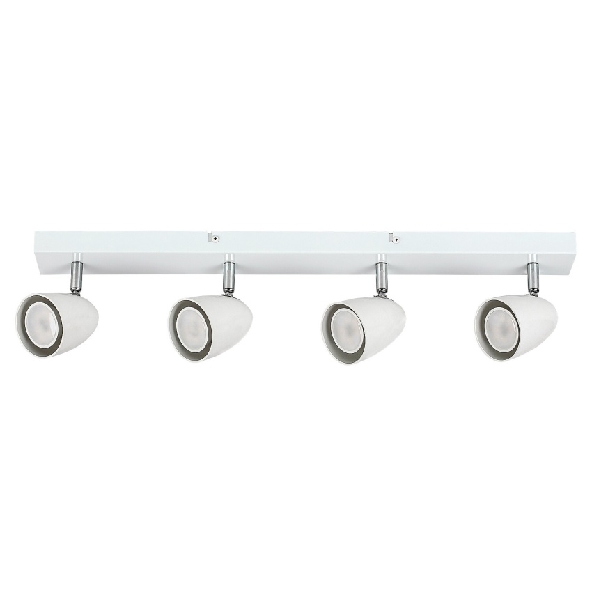 Moderní čtyřbodové stropní svítidlo Rabalux Perico 73022 je elegantní volbou pro osvětlení obývacího pokoje, ložnice nebo pracovny. Bílé kovové tělo v kombinaci s plastovými stínidly ve stejné barvě působí čistě, svěže a nadčasově. Čtyři pohyblivé světelné hlavy umístěné vedle sebe umožňují nasměrovat světlo přesně tam, kde je potřeba, což zajišťuje rovnoměrné osvětlení i větších prostor. Lampa je určena pro čtyři žárovky s paticí GU10 o maximálním výkonu 5 W. Dodává se bez světelných zdrojů.
