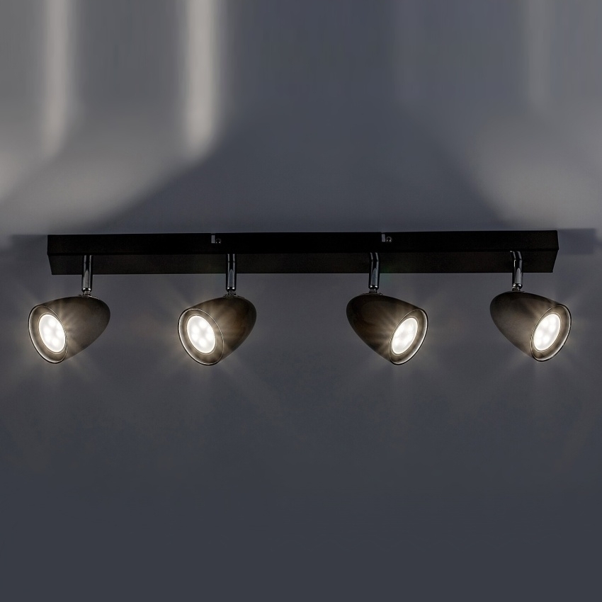 Moderní čtyřbodové stropní svítidlo Rabalux Perico 73021 je ideální volbou pro osvětlení obývacího pokoje, ložnice nebo pracovny. Kovové tělo v černé barvě doplňují lesklá plastová stínidla, která dodávají svítidlu elegantní a současně decentní vzhled. Čtyři pohyblivé světelné hlavy umožňují nasměrovat světelný tok podle potřeby, takže snadno osvětlíte i větší prostor. Lampa je určena pro čtyři žárovky s paticí GU10 o maximálním výkonu 5 W. Dodává se bez světelných zdrojů.