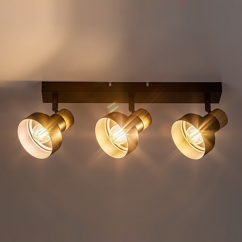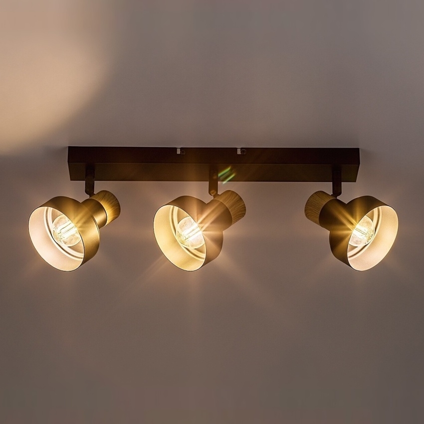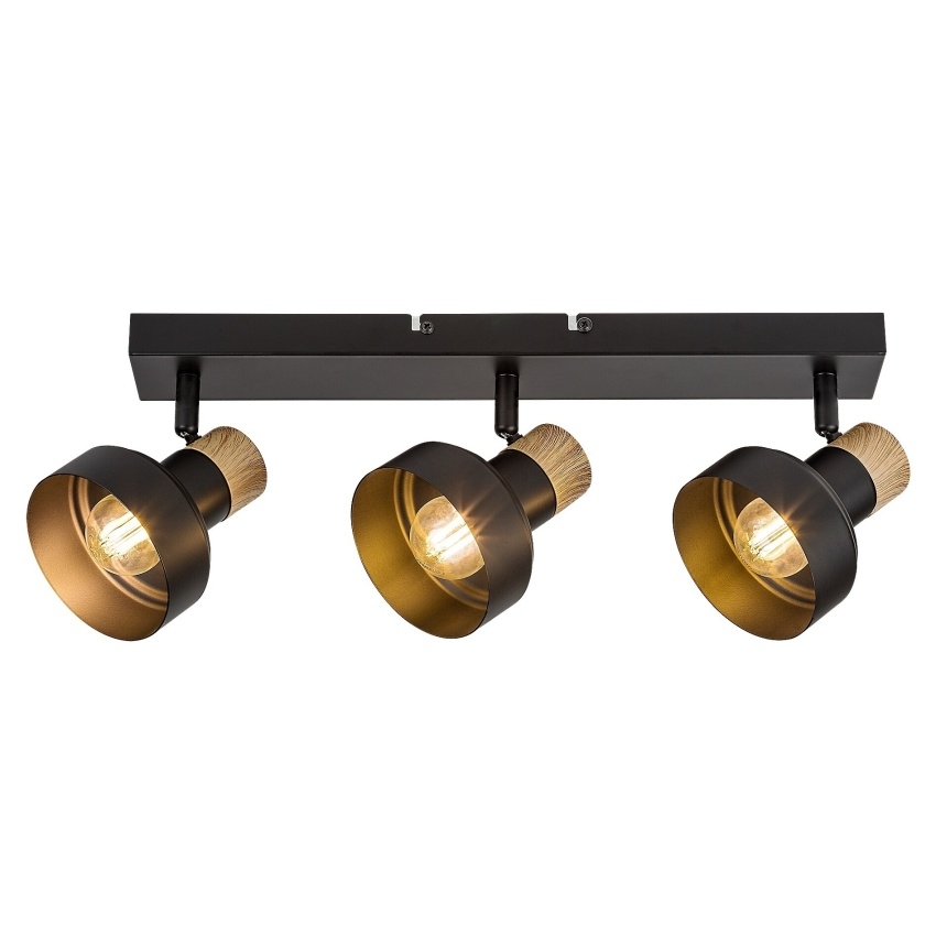 Stropní bodové svítidlo Rabalux Saskia 73057 se třemi světelnými body je inspirováno skandinávským stylem, který spojuje jednoduchost, eleganci a přírodní prvky. Kombinace černého kovu a dubového dřeva působí moderně, zatímco zlatý vnitřek stínidel dodává světlu teplý, útulný nádech. Tři otočné hlavice umožňují snadno přizpůsobit směr svícení podle aktuálních potřeb. Svítidlo se hodí do obývacího pokoje, ložnice i pracovny a je určeno pro tři žárovky s paticí E14 a maximálním příkonem 15 W. Dodává se bez světelných zdrojů.