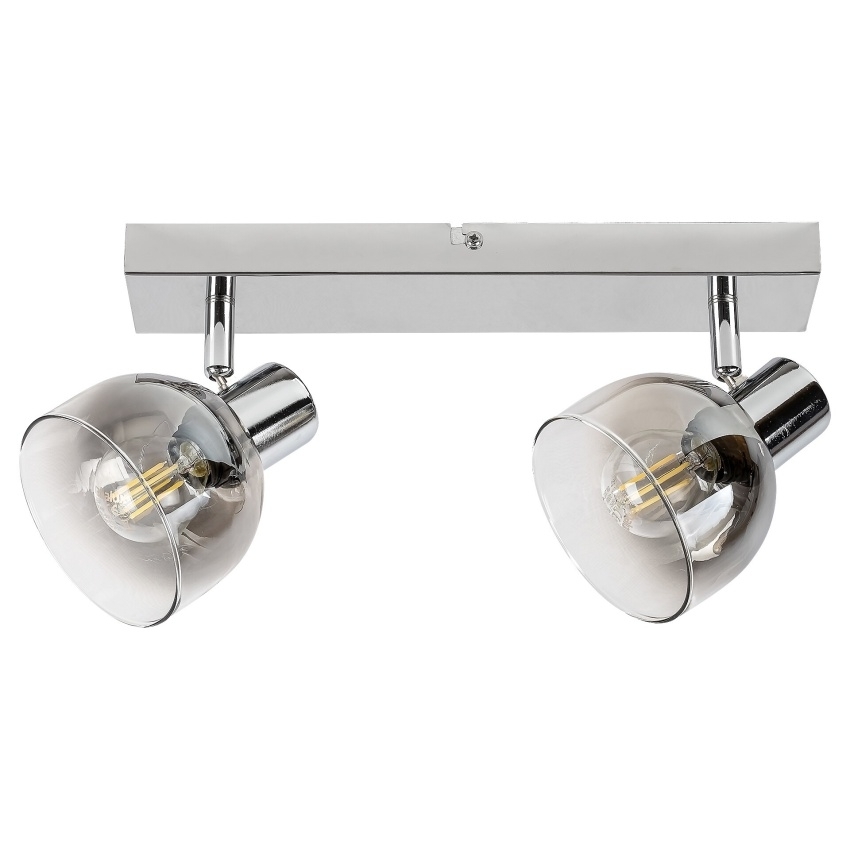 Dvojité bodové svítidlo Rabalux Tarien 3249 v chromovém provedení kombinuje moderní design s funkčností. Kovová konstrukce v lesklé úpravě doplněná tónovanými skleněnými stínidly vytváří elegantní dojem a poskytuje příjemné, měkké osvětlení. Díky dvěma nastavitelným hlavám lze světlo nasměrovat přesně tam, kde je potřeba, což činí svítidlo ideálním pro obývací pokoj, jídelnu, ložnici nebo kuchyni. Určeno pro dvě žárovky s paticí E14 a maximálním výkonem 40 W. Svítidlo se dodává bez světelných zdrojů.