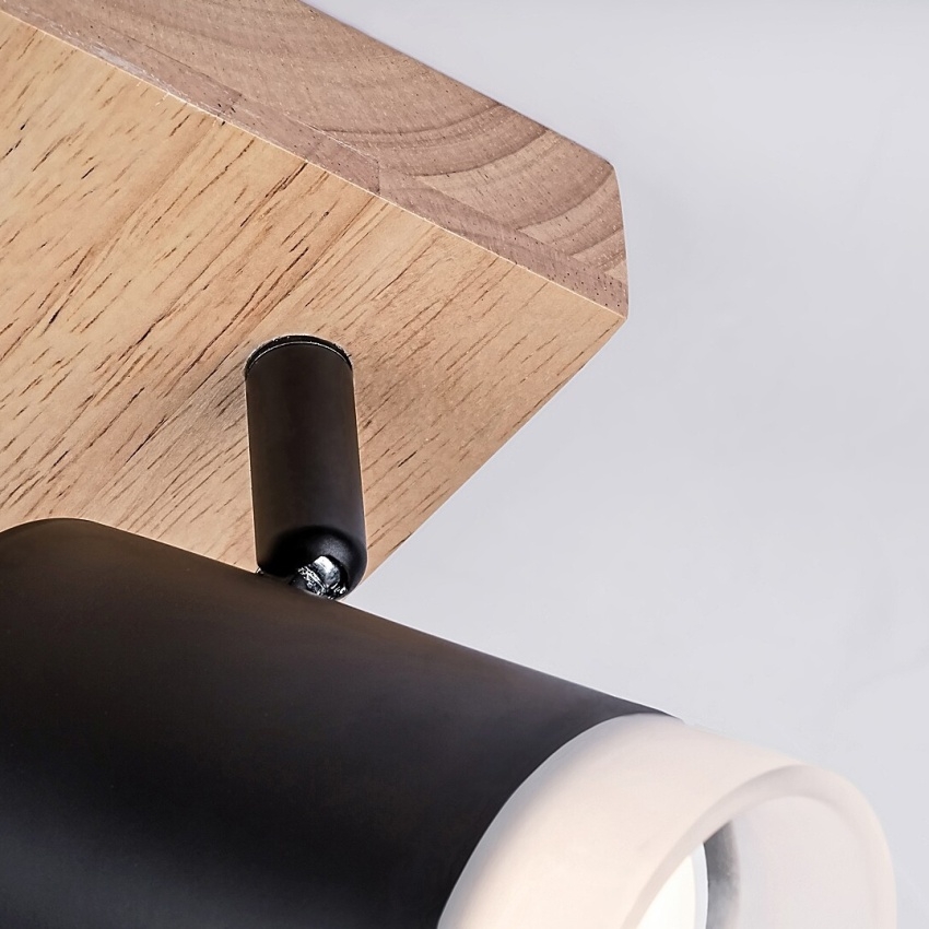 Stropní bodové svítidlo Rabalux Toras 73124 spojuje moderní kovový design s přirozeným vzhledem dřeva v duchu skandinávského stylu. Čtyři válcovitá černá kovová stínidla jsou upevněna na čtvercové základně v dekoru dubu, která dodává svítidlu příjemně teplý a elegantní vzhled. Díky pohyblivým hlavám je možné nasměrovat světlo přesně podle potřeby, a tím dosáhnout optimálního osvětlení prostoru. Svítidlo je vhodné do obývacího pokoje, ložnice nebo pracovny. Lze použít se čtyřmi žárovkami s paticí GU10 a maximálním příkonem 5 W. Dodává se bez světelných zdrojů.