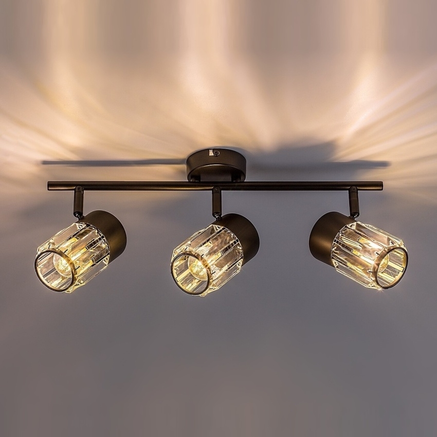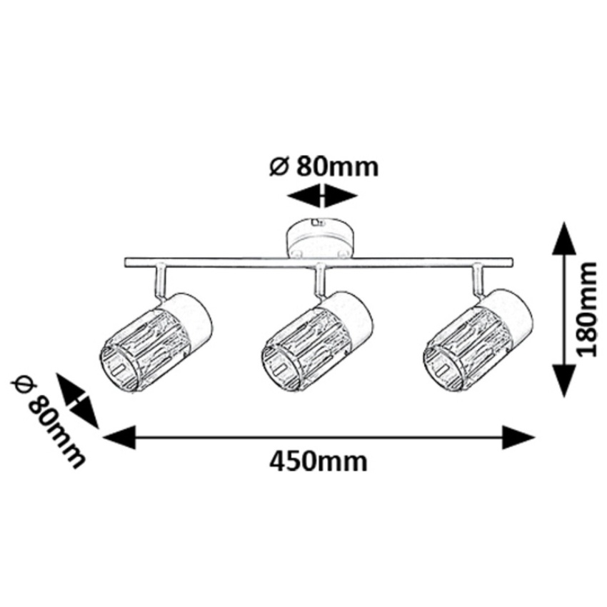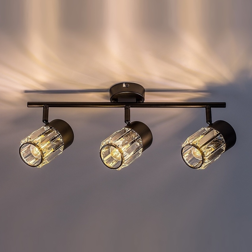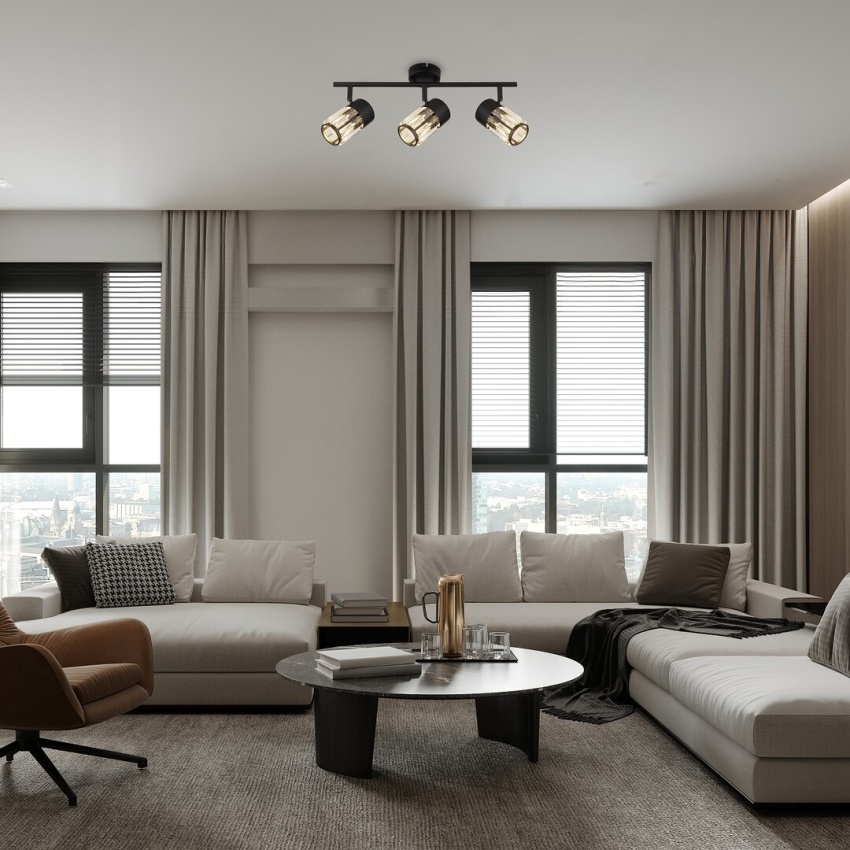 Stropní bodové svítidlo Rabalux Venaro 73061 se třemi světelnými body v klasickém stylu je elegantním řešením pro osvětlení interiéru. Černá kovová konstrukce doplněná o válcovitá skleněná stínidla s krystalickým vzorem působí decentně a nadčasově. Díky otočným kloubům lze světelné paprsky snadno nasměrovat podle aktuálních potřeb. Svítidlo se hodí do obývacího pokoje, ložnice, kuchyně i jídelny. Určeno pro tři žárovky s paticí E14 a maximálním příkonem 15 W. Dodává se bez světelných zdrojů.