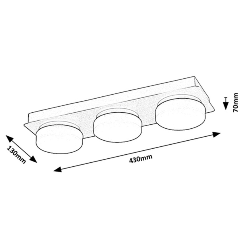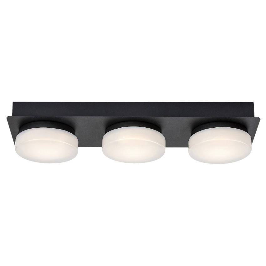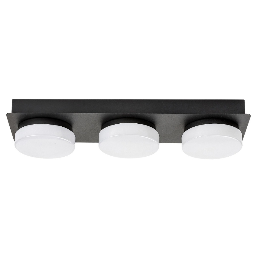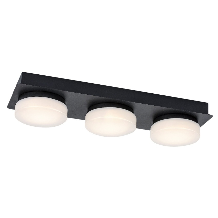 Stropní LED svítidlo Rabalux Attichus 75003 je elegantní a funkční řešení pro moderní koupelny. Kovové tělo v matné černé barvě doplňují tři kulatá bílá plastová stínítka, která poskytují rovnoměrné rozptýlení světla. Díky čistému designu a kontrastu černé a bílé barvy se svítidlo hodí do široké škály interiérů. Vestavěné LED zdroje s celkovým výkonem 18 W zajišťují světelný tok 1700 lm (2350 lm bez stínítka) a vyzařují přirozené bílé světlo o teplotě 4000 K, které vytváří příjemnou a jasnou atmosféru. Díky stupni krytí IP44 je svítidlo chráněno proti stříkající vodě a prachu, což z něj činí ideální volbu pro použití v koupelnách.