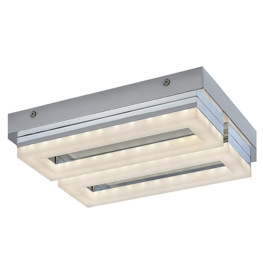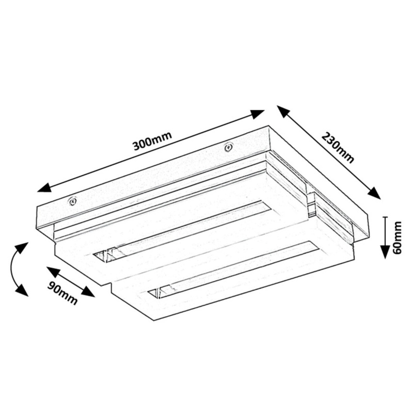 Stropní LED svítidlo Rabalux Blas 75020 je elegantním a praktickým doplňkem moderní koupelny. Chromové kovové tělo doplňují dvě obdélníková bílá plastová stínítka, která poskytují rovnoměrné a jasné osvětlení prostoru. Obě světelné části lze samostatně naklánět nahoru a dolů, takže světlo lze směrovat podle potřeby. Svítidlo má vestavěný LED zdroj s výkonem 24 W a světelným tokem 2250 lm (2700 lm bez stínítka), který vyzařuje přirozené bílé světlo o teplotě 4000 K. Díky stupni krytí IP44 je chráněno proti stříkající vodě, což z něj činí ideální volbu pro koupelnové prostředí. Kombinace chromu a bílé barvy dodává svítidlu nadčasový, čistý vzhled.