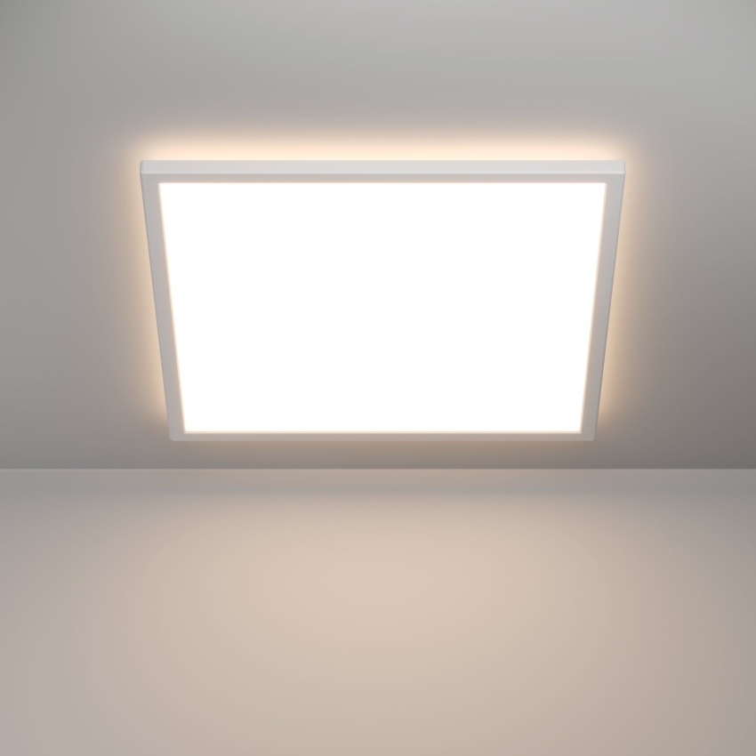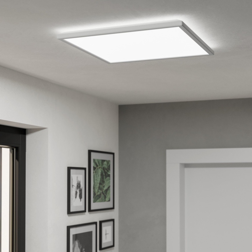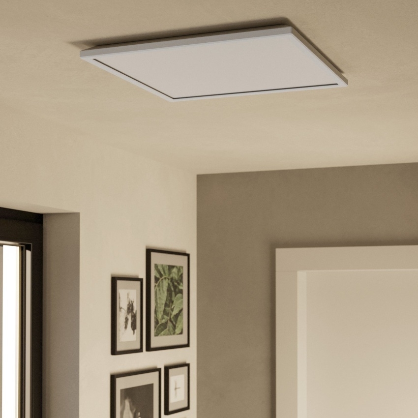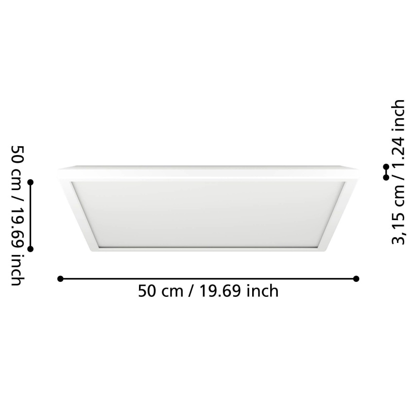 Stropní svítidlo EGLO Rovito-R nabízí moderní a plochý design s rozměrem 500 × 500 mm a výškou pouhých 30 mm. Integrovaný LED zdroj poskytuje světelný tok 2800 lm a umožňuje měnit teplotu světla v rozsahu 2700–6500 K (CCT), takže lze přepínat mezi teplým, neutrálním i studeným bílým světlem. Svítidlo je stmívatelné a ovladatelné pomocí dálkového ovladače, což umožňuje snadné přizpůsobení světelných podmínek aktuální náladě nebo potřebám prostoru. Díky krytí IP44 je vhodné také do místností se zvýšenou vlhkostí, jako jsou koupelny nebo vstupní prostory.