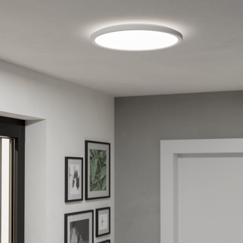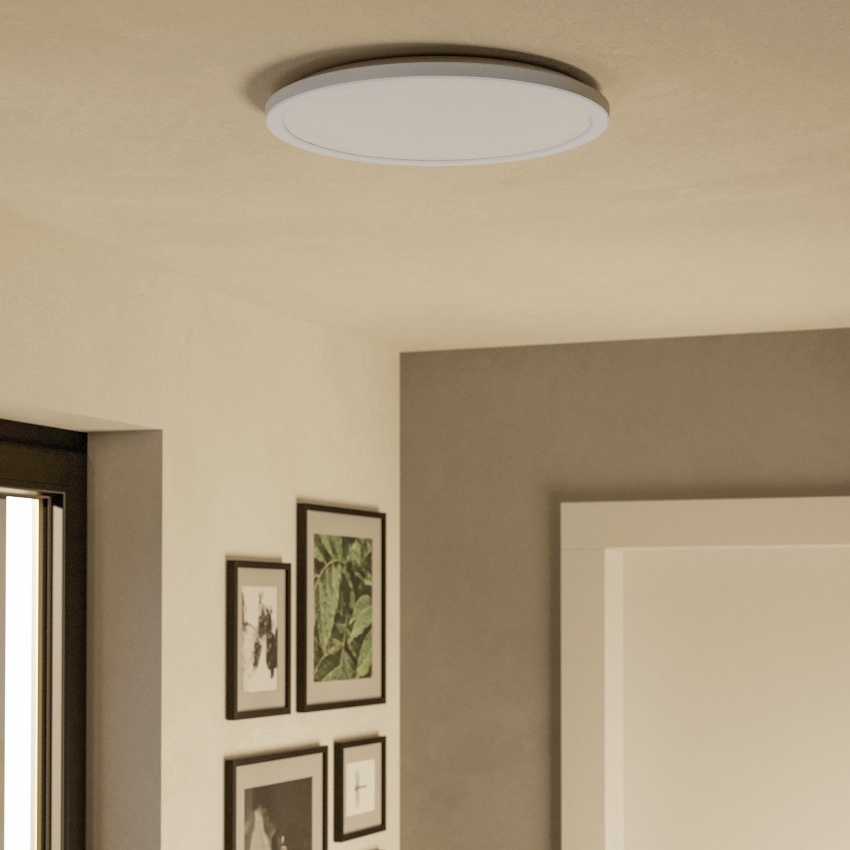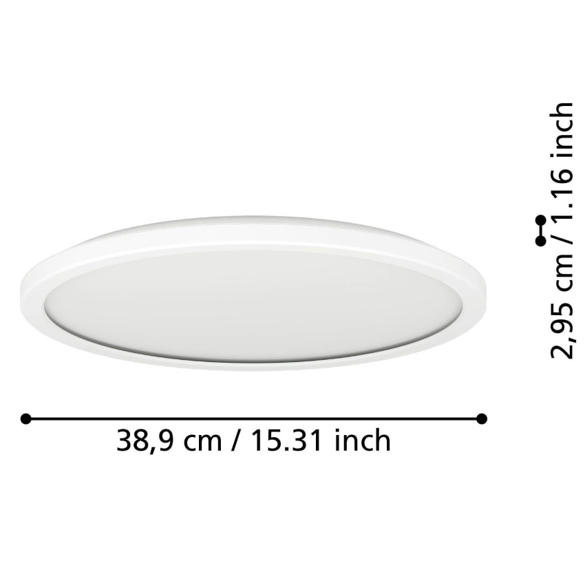 Stropní svítidlo ROVITO-R je určeno pro vnitřní prostory. Tělo i stínidlo jsou vyrobeny z plastu v bílé barvě. Výrobek má výšku 30 mm, průměr 389 mm a čistou hmotnost 0.99 kg. Součástí svítidla je dálkové ovládání a funkce CCT.