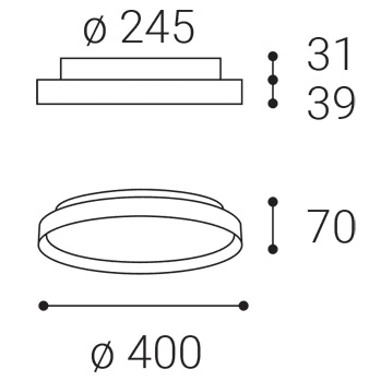 Stropní svítidlo LED2 MOON 40 nabízí čistý minimalistický vzhled s hliníkovým tělesem v bílé barvě a opálovým plastovým difuzorem pro rovnoměrné rozptýlení světla. Technologie Tunable White umožňuje plynule volit mezi teplou (3000 K) a neutrální (4000 K) barvou světla, podáním barev Ra90 a pohodlným stmíváním přes DALI/PUSH. Svítidlo s příkonem 36 W a světelným tokem 2800 lm je vhodné do moderních interiérů, napájeno 230 V/50 Hz, s krytím IP20 a třídou ochrany I. Díky průměru 400 mm a výšce 70 mm se hodí pro stropní i nástěnnou montáž; připojení se provádí přívodním kabelem do svorkovnice a řada MOON nabízí více rozměrů, výkonů i variant stmívání.