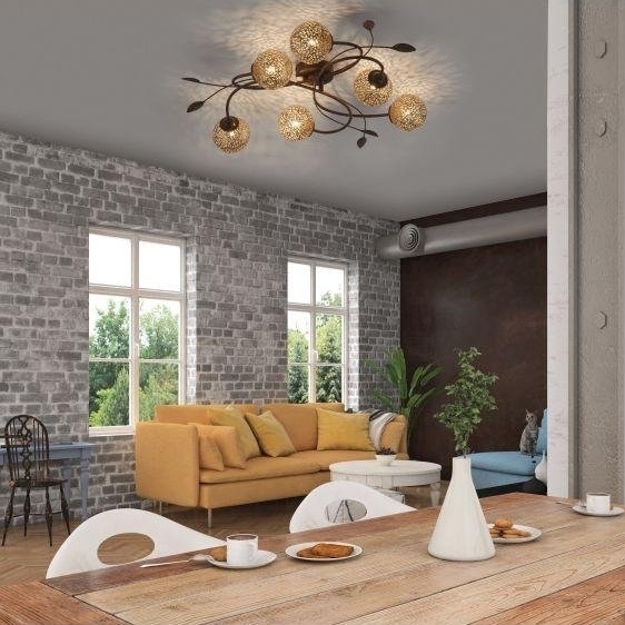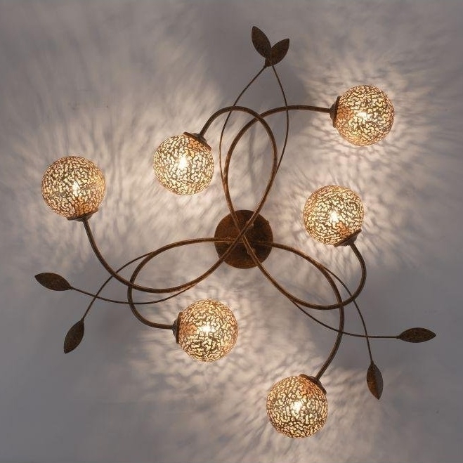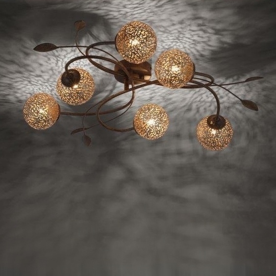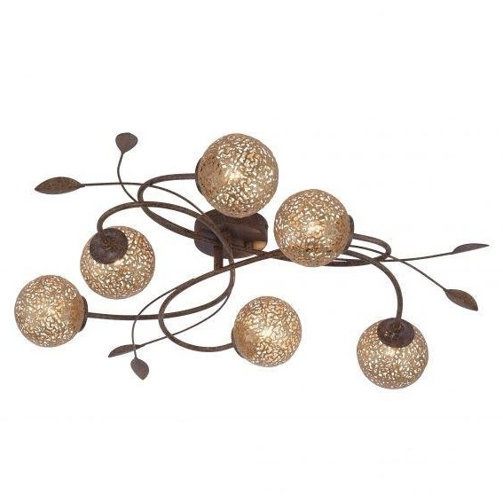 PAUL NEUHAUS GRETA PN 6398-48 stropní svítidlo se šesti paticemi G9 v hnědo-zlatém provedení s ozdobnými koulemi.