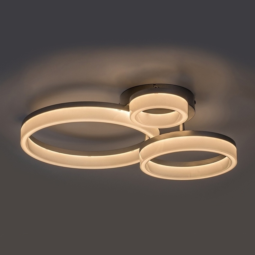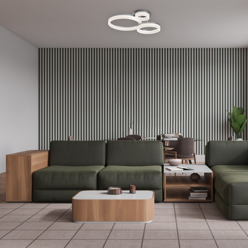 Stropní svítidlo Rabalux Amilia kombinuje moderní design s elegancí chromového provedení. Kovové tělo v lesklé chromové barvě doplňuje bílé plastové stínidlo, které zajišťuje měkké a rovnoměrné osvětlení. Konstrukci svítidla tvoří tři kruhové prvky různých velikostí, které vytvářejí zajímavý prostorový efekt. Vestavěný LED zdroj o výkonu 24 W umožňuje přepínání teploty světla ve třech úrovních – 3000 K, 4000 K nebo 6500 K – pomocí DIP přepínače. Díky vysoké svítivosti a decentnímu vzhledu je svítidlo vhodné pro obývací pokoj, jídelnu nebo ložnici. Model Amilia je ideální volbou pro moderní interiéry, kde spojuje styl, účinnost a dlouhou životnost.