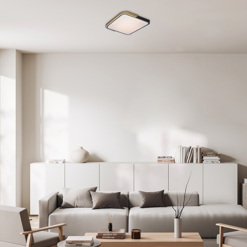 Moderní chytré stropní svítidlo Rabalux Arild 71146 je ideální volbou pro ty, kteří chtějí spojit elegantní design s pokročilými funkcemi osvětlení. Matně černé kovové tělo se zaoblenými rohy doplňuje bílé plastové stínítko, které zajišťuje příjemné a rovnoměrné rozptýlení světla. Svítidlo je vybaveno integrovaným LED zdrojem o výkonu 48 W se světelným tokem 1850 lm (3800 lm bez stínítka) a s dlouhou životností až 50 000 hodin. Pomocí dálkového ovladače nebo mobilní aplikace Tuya lze pohodlně měnit barevnou teplotu (3000, 4000 nebo 6500 K), regulovat jas, aktivovat noční režim, nastavit časovač nebo využít funkci paměti. Svítidlo podporuje také RGB osvětlení a lze jej ovládat přes Wi-Fi i Bluetooth, což z něj dělá plnohodnotné inteligentní světlo pro moderní domácnost.