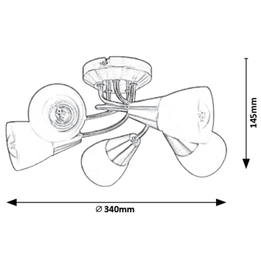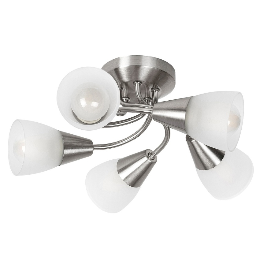 Stropní svítidlo Rabalux Connor 5691 v tradičním stylu je ideální volbou pro obývací pokoj nebo ložnici. Kovové tělo v saténově chromovém provedení doplňuje pět stínidel z opálového skla, která zajišťují rovnoměrné a příjemné osvětlení prostoru. Díky pěti žárovkám rozloženým do různých směrů poskytuje svítidlo dostatek světla i pro větší místnosti. Model je kompatibilní se žárovkami s paticí E14 (max. 40 W) a dodává se bez světelných zdrojů.