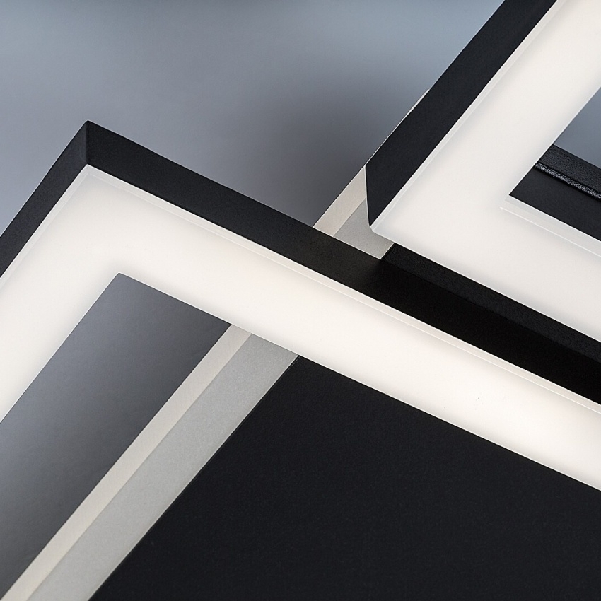 Stropní svítidlo Rabalux Donya zaujme svým moderním a symetrickým designem, který kombinuje funkčnost s estetikou. Kovové tělo v černém provedení doplňuje bílé akrylové stínidlo, které vytváří rovnoměrné a příjemné osvětlení. Konstrukce svítidla je tvořena čtvercovými prvky různých velikostí, které společně tvoří dekorativní rám připevněný k černé základně. Vestavěný LED zdroj o výkonu 24 W vyzařuje přirozené bílé světlo (4000 K), jež zajišťuje čistý a moderní vzhled interiéru. Svítidlo je ideální pro obývací pokoj, jídelnu nebo ložnici a díky LED technologii nabízí dlouhou životnost i úsporný provoz.