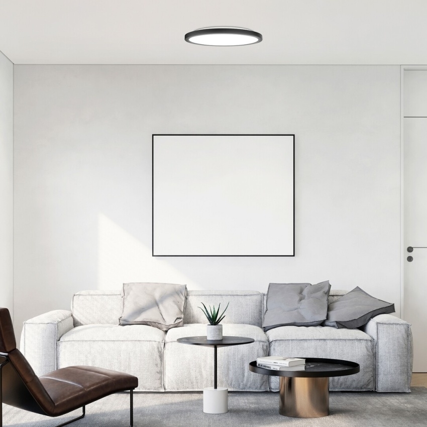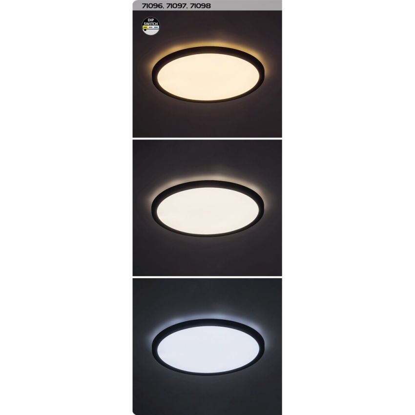 Moderní stropní svítidlo Rabalux Gonzalo 71096 v technickém stylu nabízí praktické a elegantní řešení pro moderní interiéry. Černé plastové tělo doplňuje bílé stínítko, které zajišťuje rovnoměrné rozptýlení světla. Svítidlo je vybaveno integrovaným LED zdrojem o výkonu 24 W a světelném toku 1600 lm (2500 lm bez stínítka). Pomocí přepínače DIP lze jednoduše měnit teplotu světla mezi 3000 K, 4000 K a 6000 K – od teplé bílé přes neutrální až po studenou bílou. Díky tomu lze svítidlo přizpůsobit jak relaxaci, tak pracovním činnostem. Kompaktní konstrukce s výškou pouhých 25 mm umožňuje nenápadnou montáž i do menších prostor. Gonzalo je ideální pro obývací pokoje, ložnice i pracovny, kde poskytuje účinné a úsporné osvětlení s dlouhou životností až 25 000 hodin.