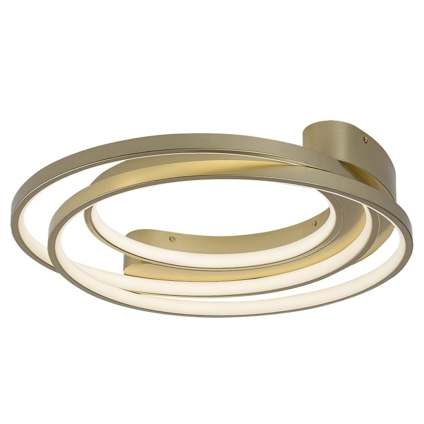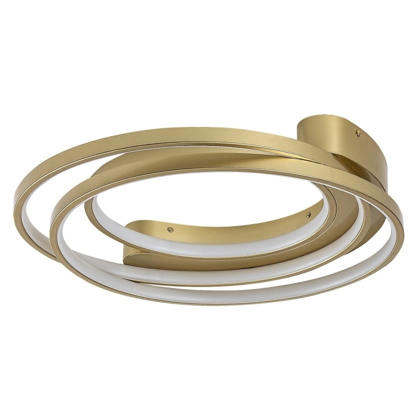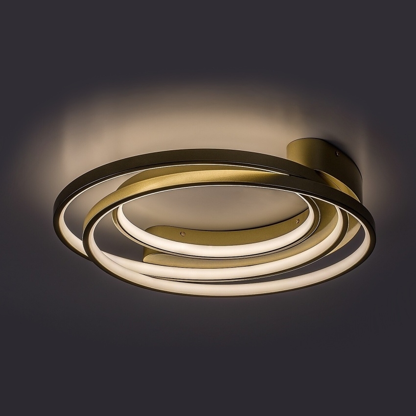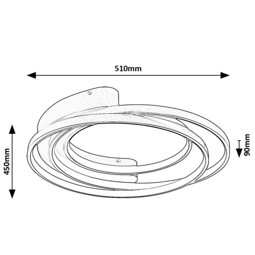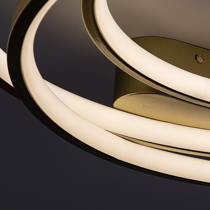 Designové LED stropní svítidlo Rabalux Holize 71288 zaujme svým moderním vzhledem a vysokou svítivostí. Skládá se z elegantně propletených kruhových prvků v lesklém zlatém provedení, které působí luxusně a dodávají interiéru jedinečný charakter. Kovové tělo doplňuje bílé silikonové stínítko, které zajišťuje rovnoměrné a měkké rozptýlení světla. Vestavěný LED modul o výkonu 50 W poskytuje světelný tok 3400 lm (6200 lm bez difuzoru) a vyzařuje přirozené bílé světlo o teplotě 4000 K. Díky silnému jasu je ideální pro prostorné obývací pokoje, jídelny či ložnice, kde zároveň slouží jako výrazný dekorační prvek. Svítidlo Holize kombinuje styl, funkčnost a úspornost v jednom moderním celku.