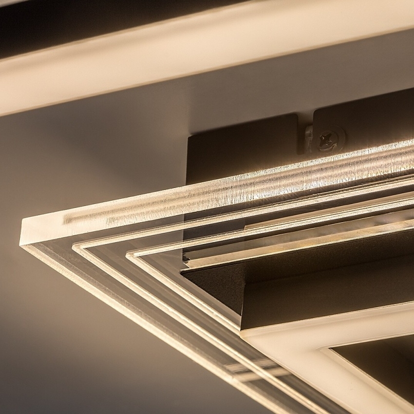 Stropní svítidlo Rabalux Ottavia představuje moderní a nápaditý design, který zaujme svou geometrickou kompozicí. Kovové tělo v elegantní černé barvě doplňuje bílé akrylové stínidlo, které zajišťuje rovnoměrné rozptýlení světla. Konstrukce lampy je tvořena dvěma protínajícími se čtvercovými prvky, které vytvářejí originální vzhled vhodný pro současné interiéry. Vestavěný LED zdroj o výkonu 28 W poskytuje teplé bílé světlo (3000 K) s vysokou intenzitou, ideální pro obývací pokoj, jídelnu nebo ložnici. Díky LED technologii svítidlo zaručuje dlouhou životnost, nízkou spotřebu energie a stabilní světelný výkon.