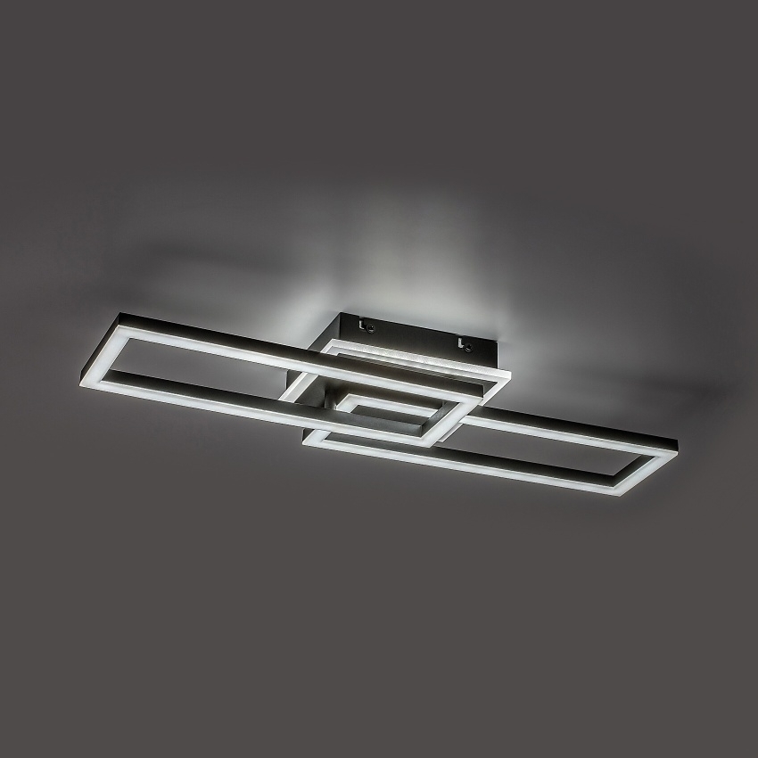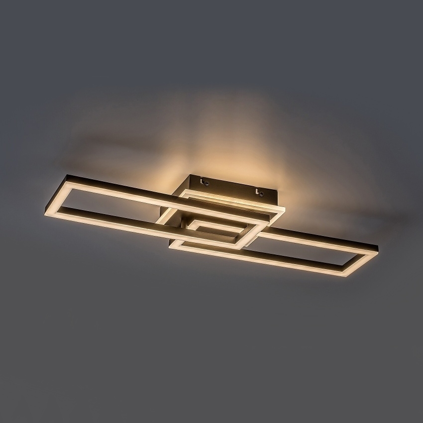 Stropní svítidlo Rabalux Ramin je moderní LED model, který kombinuje elegantní design s praktickými funkcemi. Kovové tělo v černé barvě doplňuje bílé plastové stínidlo, které zajišťuje rovnoměrné a příjemné osvětlení. Konstrukce je tvořena dvěma obdélníkovými světelnými prvky upevněnými na čtvercové dekorativní základně. Svítidlo disponuje vestavěným LED zdrojem s výkonem 30 W a umožňuje plynulé nastavení teploty světla v rozsahu 3000–6500 K. Pomocí dálkového ovládání lze měnit jas, využít funkce paměti, časovače nebo aktivovat režim nočního světla. Ramin je ideální volbou pro moderní interiéry, zejména obývací pokoje, jídelny či ložnice. Díky integrované LED technologii se vyznačuje úsporným provozem a dlouhou životností.
