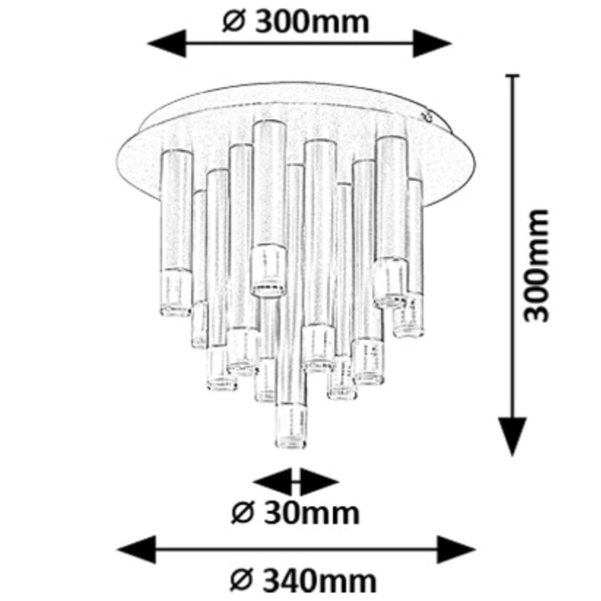 Ramira je výrazné stropní svítidlo s moderním a luxusním vzhledem, které se stane dominantou každého interiéru. Kovové tělo v elegantní zlaté barvě doplňuje třináct průhledných akrylových stínidel připomínajících visící rampouchy nebo stalaktity. Kombinace zlatého kovu a čirého akrylu působí exkluzivně a vnáší do místnosti teplý, sofistikovaný nádech. Lampa je ideální pro obývací pokoj, jídelnu, ložnici nebo kuchyni. Svítidlo je určeno pro třináct žárovek s paticí G9 o maximálním příkonu 5 W (zdroje nejsou součástí balení). Díky jejich počtu poskytuje Ramira silné, rovnoměrné osvětlení i větších prostor. Rozměry svítidla: průměr 340 mm, výška 300 mm.