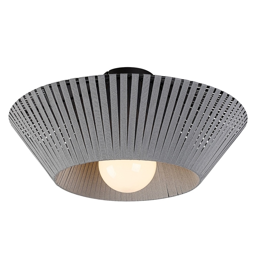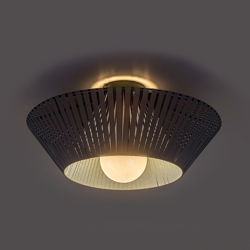Raven je elegantní stropní svítidlo ve vintage stylu, které dodá interiéru jedinečný charakter a útulnou atmosféru. Kovové tělo v černém provedení doplňuje originální stínítko z šedých textilních pásků, jež vytváří jemné, náladové osvětlení. Díky svému designu je svítidlo ideální do obývacího pokoje nebo ložnice, kde vynikne jako výrazný doplněk. Model je určen pro jednu žárovku s paticí E27 o maximálním příkonu 6 W (zdroj není součástí balení). Použitím teplé bílé žárovky vytvoříte příjemné, domácí světlo vhodné k odpočinku. Rozměry svítidla jsou průměr 400 mm a vzdálenost od stropu 190 mm.