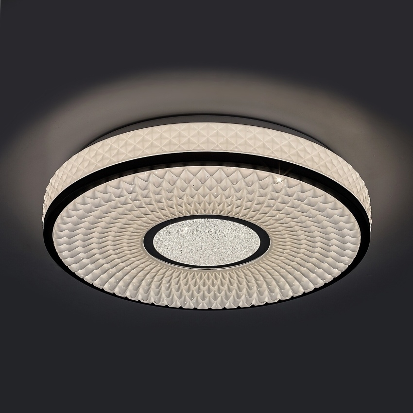 Moderní stropní svítidlo Rabalux Sedona2 71137 kombinuje elegantní design s vysokou funkčností. Černé kovové tělo je doplněno bílým plastovým stínítkem s jemným hvězdným efektem, který dodává světlu atraktivní třpytivý vzhled. Integrovaný LED zdroj o výkonu 24 W poskytuje světelný tok 1680 lm (2400 lm bez stínítka) a vyzařuje přirozené bílé světlo o teplotě 4000 K. Díky dlouhé životnosti až 50 000 hodin a univerzálnímu designu je svítidlo vhodné do obývacího pokoje, ložnice nebo pracovny. Model Sedona2 dodá každému interiéru moderní vzhled a příjemné, rovnoměrné osvětlení.