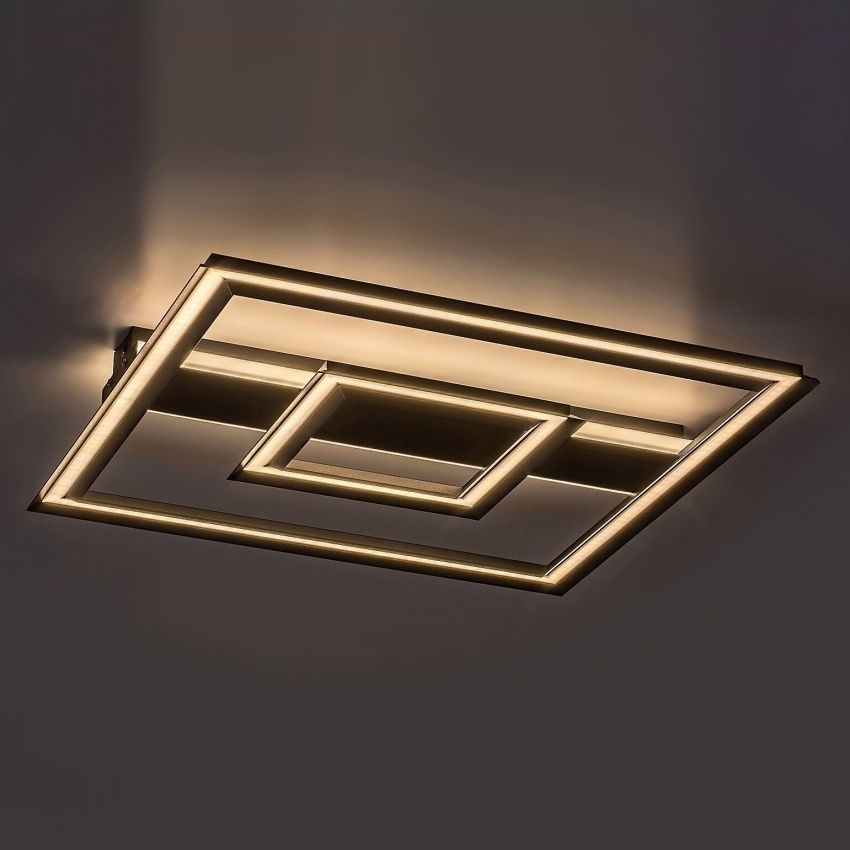 Moderní LED stropní svítidlo Rabalux Sidona 71071 zaujme svým minimalistickým designem a vysokým výkonem. Černá kovová konstrukce se skládá ze dvou čtvercových rámů různých velikostí, které dodávají svítidlu jedinečný geometrický vzhled. Bílé plastové stínítko rozptyluje světlo rovnoměrně po celé místnosti a zajišťuje příjemné teplé bílé osvětlení o teplotě 3000 K. Vestavěný LED modul o výkonu 48 W nabízí světelný tok 2300 lm (5500 lm bez stínítka) a dlouhou životnost až 30 000 hodin. Díky svému elegantnímu provedení je Sidona ideální volbou pro moderní obývací pokoje, jídelny nebo pracovny.