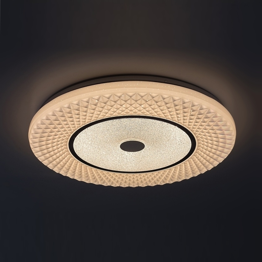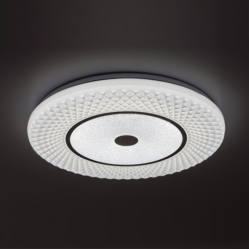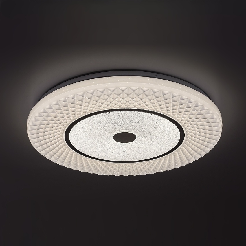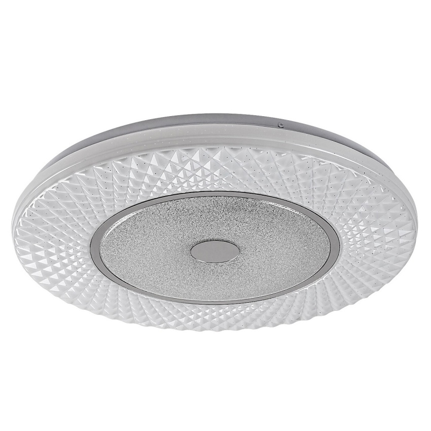 Moderní stropní svítidlo Rabalux Tornado 3254 v elegantním chromovém provedení spojuje minimalistický design s množstvím inteligentních funkcí. Kruhové kovové tělo doplňuje bílé plastové stínítko s jemným hvězdným efektem, který vytváří příjemnou atmosféru. Vestavěný LED modul o výkonu 72 W poskytuje silný světelný tok 5470 lm a mimořádně dlouhou životnost až 50 000 hodin. Barevnou teplotu lze plynule nastavit v rozsahu 3000–6500 K – od teplé po studenou bílou – podle aktuální potřeby. Svítidlo je stmívatelné a nabízí také funkce časovače, paměti a nočního režimu. Všechny tyto funkce lze pohodlně ovládat pomocí přiloženého dálkového ovladače, přičemž změnu teploty světla lze provést i klasickým nástěnným vypínačem. Díky svému univerzálnímu designu se hodí do obývacího pokoje, ložnice i pracovny.