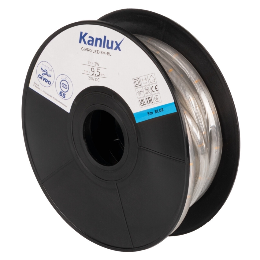 Kanlux GIVRO LED je bezpečný a pohodlný světelný had, jehož způsob spojování jednotlivých úseků zajišťuje spolehlivost a komfort při používání. Díky vysokému stupni krytí IP65 jsou hady GIVRO chráněny proti vnikání prachu a vlhkosti a jejich odolnost vůči UV záření zaručuje dlouhodobé zachování vlastností. Jsou dostupné v pěti délkách (5, 10, 15, 30, 50 m) a šesti barevných variantách teplé (3000K), neutrální (4000K), studené (6500K) a také červené, zelené a modré. Světelné hady Kanlux GIVRO LED lze spojovat až do délky 100 metrů, přičemž průběžné napájení usnadňuje vytváření rozsáhlých instalací. V případě potřeby je možné had přestřihnout ale pro samostatné použití je vhodný pouze úsek zakončený vidlicí, přičemž zkrácený konec je třeba zabezpečit koncovkou GIVRO END CAP. Volitelné příslušenství zahrnuje připojovací kabel GIVRO-PR SET (150 cm, IP44, zakončený vidlicí) a GIVRO-PR SET W/O PLUG (150 cm, IP65, bez vidlice), koncovky GIVRO END CAP a úchyty GIVRO HOLDER (10 kusů v balení) pro snadnou montáž světelných hadů.