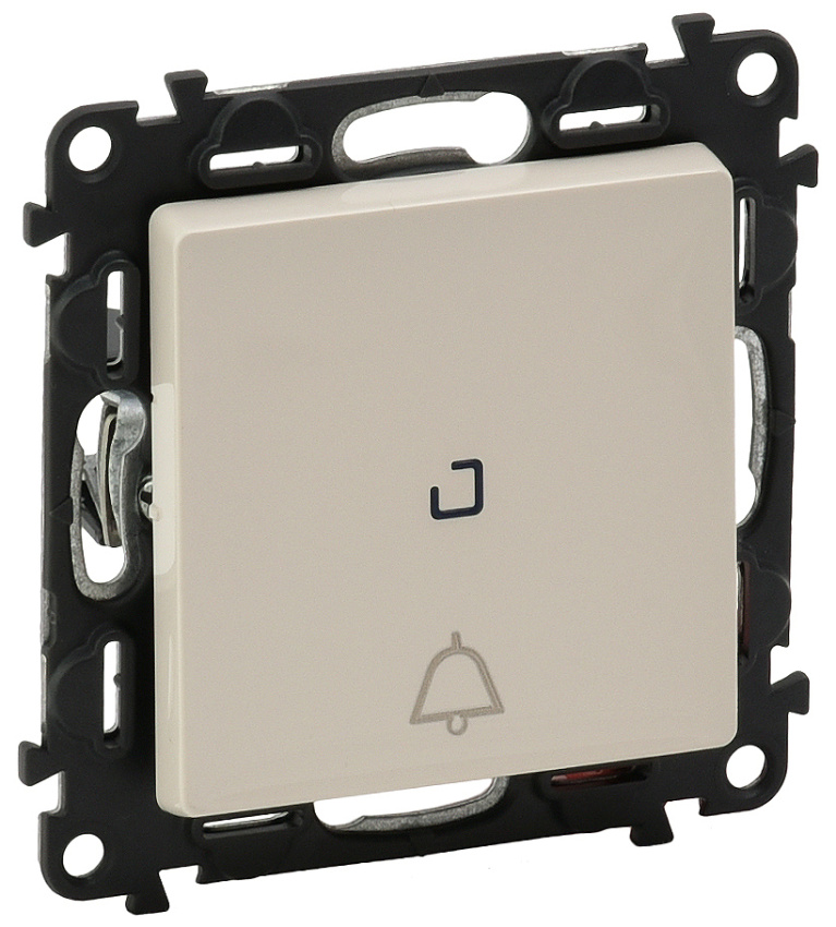 Tlačítko s přepínacím kontaktem a orientačním podsvětlením,symbol zvonku, bezšroubové v béžové barvě. 6A-250V AC