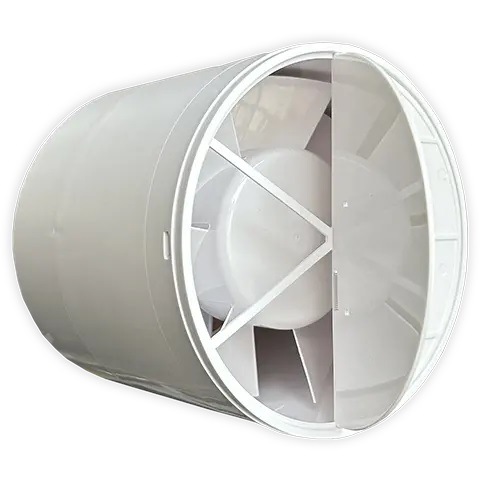Domovní potrubní axiální ventilátor, vyrobený ze sněhobílé hmoty ABS, která je antistatická a lehce čistitelná. Vrtule ventilátoru má speciálně tvarované lamely, které zvyšují výkon a statický tlak a zároveň snižují hlučnost ventilátoru. Krytí výrobku IP42. Dodávaný v průměru 150 (147) mm.