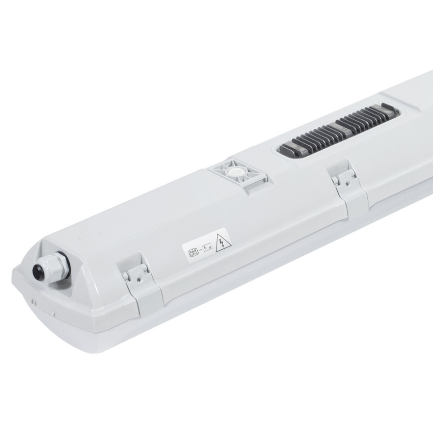 LED svítidlo Trevos FUTURA 2.5FT je profesionální průmyslové svítidlo určené pro náročné podmínky s vysokou vlhkostí, prašností nebo mechanickým namáháním. Díky krytí IP66 a mechanické odolnosti IK10 je vhodné pro výrobní prostory, sklady, parkoviště či potravinářský průmysl. Verze s označením M3hAt je vybavena nouzovým záložním zdrojem s autotestem a dobou provozu 3 hodiny.