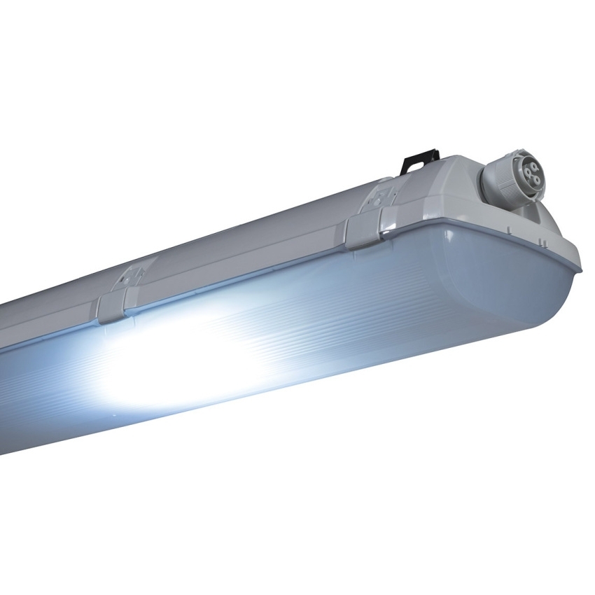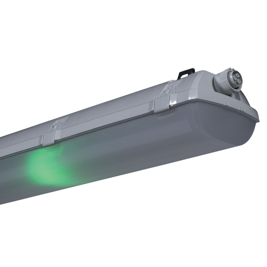 Plastové průmyslové LED svítidlo TREVOS FUTURA 2.2FT PCC 440LM NM3HAT 62443 určené pro nouzové osvětlení, s účinností 133 lm/W a krytím IP66.