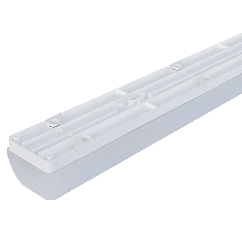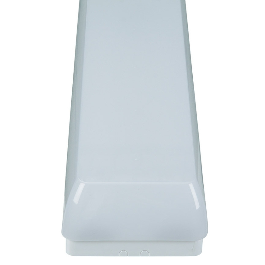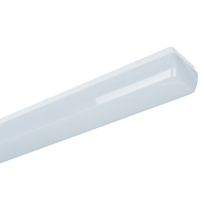 Plastové interiérové LED svítidlo TREVOS LINEA 1.4FT SNS 4400/840 110116 přisazené ke stropu nebo na stěnu s modulem LED 1x4400 lm, účinností 139 lm/W a krytím IP54.